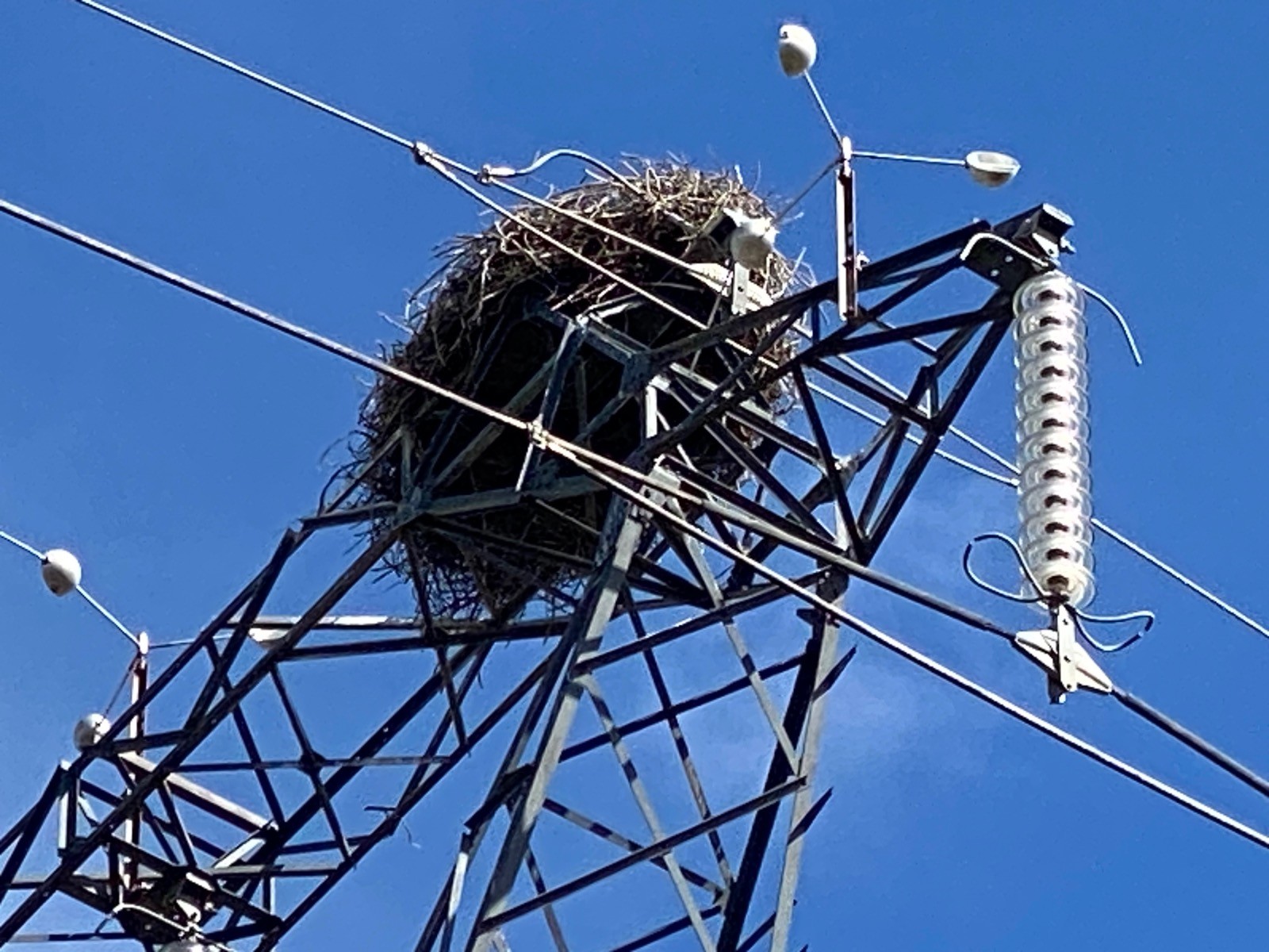 Ces grands oiseaux majestueux ont élu domicile en construisant leurs nids au sommet des pylônes ( photo no 20 ).
