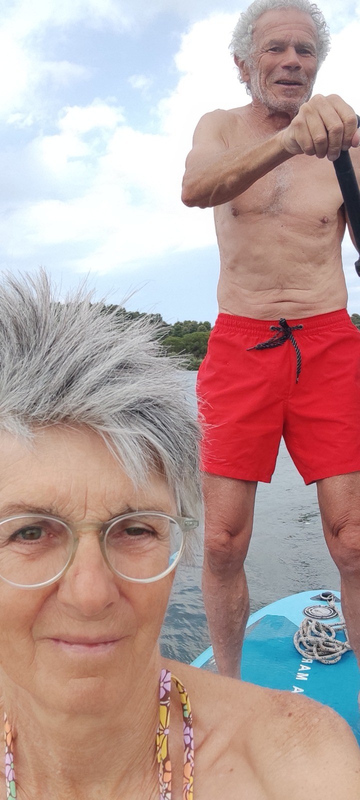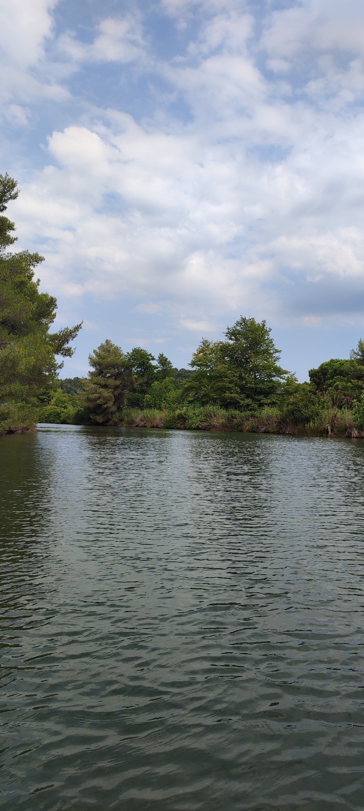 Ni une ni deux Maryvonne dit : ben on y retourne. Et nous voilà repartit pour Kk voule ou moteur ?. Nous mouillons, et allons en paddle jusqu'à l'étang t qui est derrière en remontant la rivière.