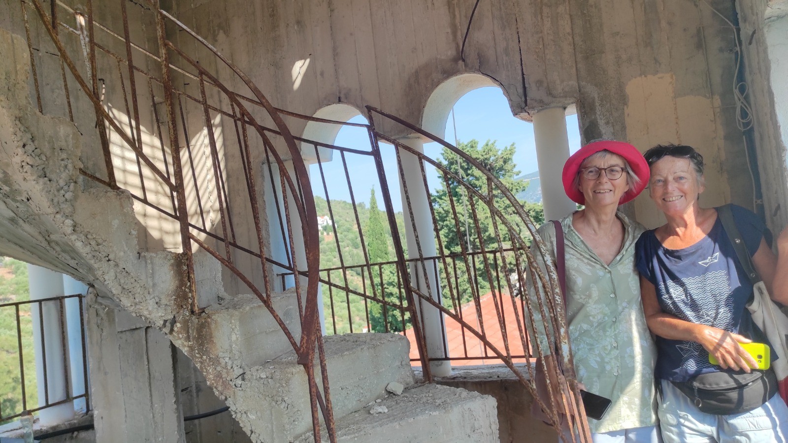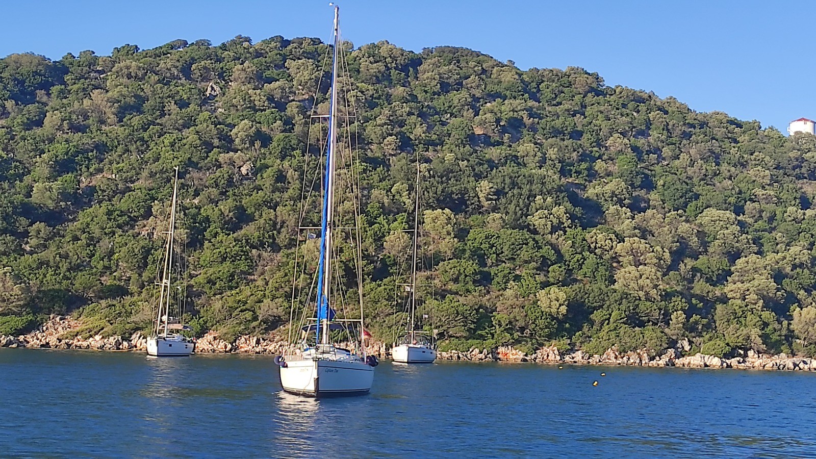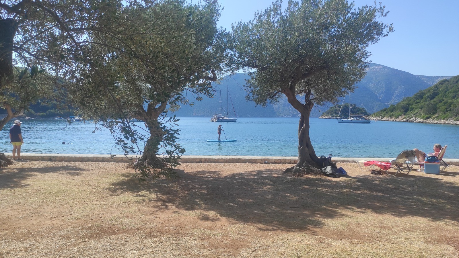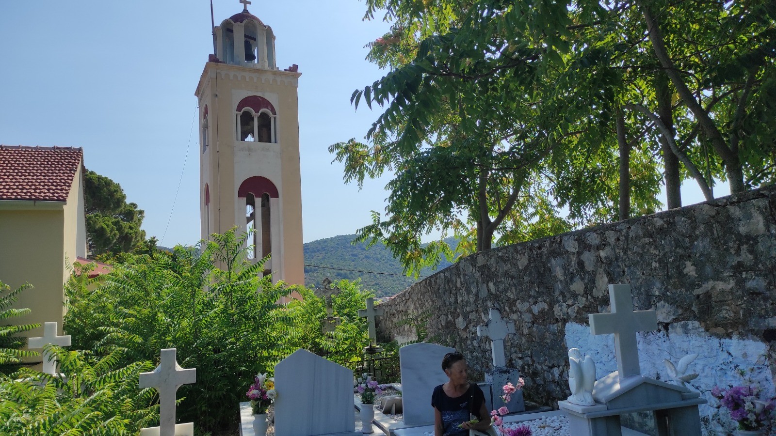 Petit tour en hauteur à l’église du coin. On monte au clocher par un escalier en ruine, la clef étant restée sur la porte. Cimetière entre abandon et entretien très agréable. Quelques courses de ravitaillement et nous partons pour pas loin pour la pause e midi. Joĺie anse avec petit café, au milieu des oliviers et des cigales. Finalement nous resterons là pour la nuit. Encore une chaude journée mais moins que hier.