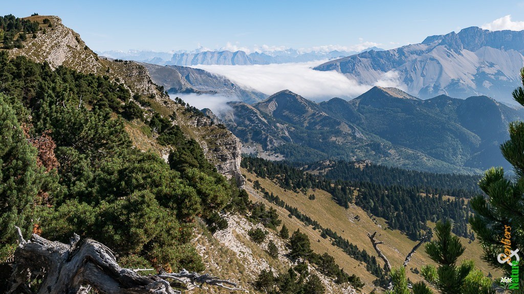 Montagne Durbonas. Hors sentier, une descente raide profite des clairières agréables de la limite de commune pour atteindre le