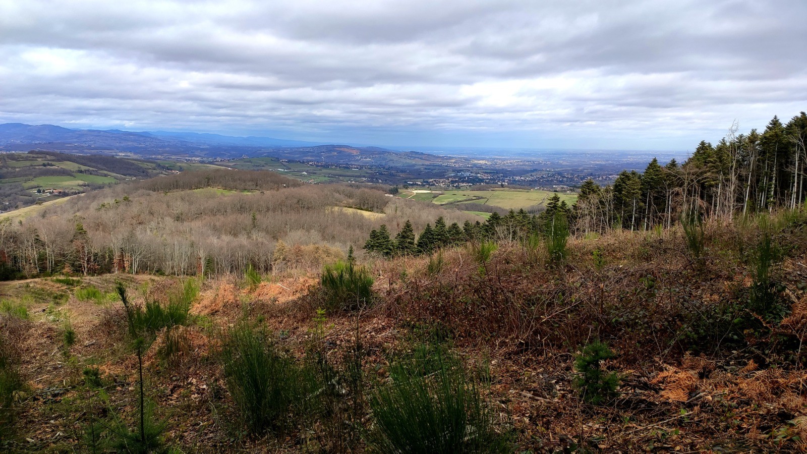 Du Col de Fontrijolle, escapade dans le bois Charnay, à la recherche de vieilles sentes en voie de disparition, petit jardinage amusant pour retrouver plus haut des singles VTT, agréables, sans personne jusqu'à l'approche de la X du Ban, retour par le GR plus classique.