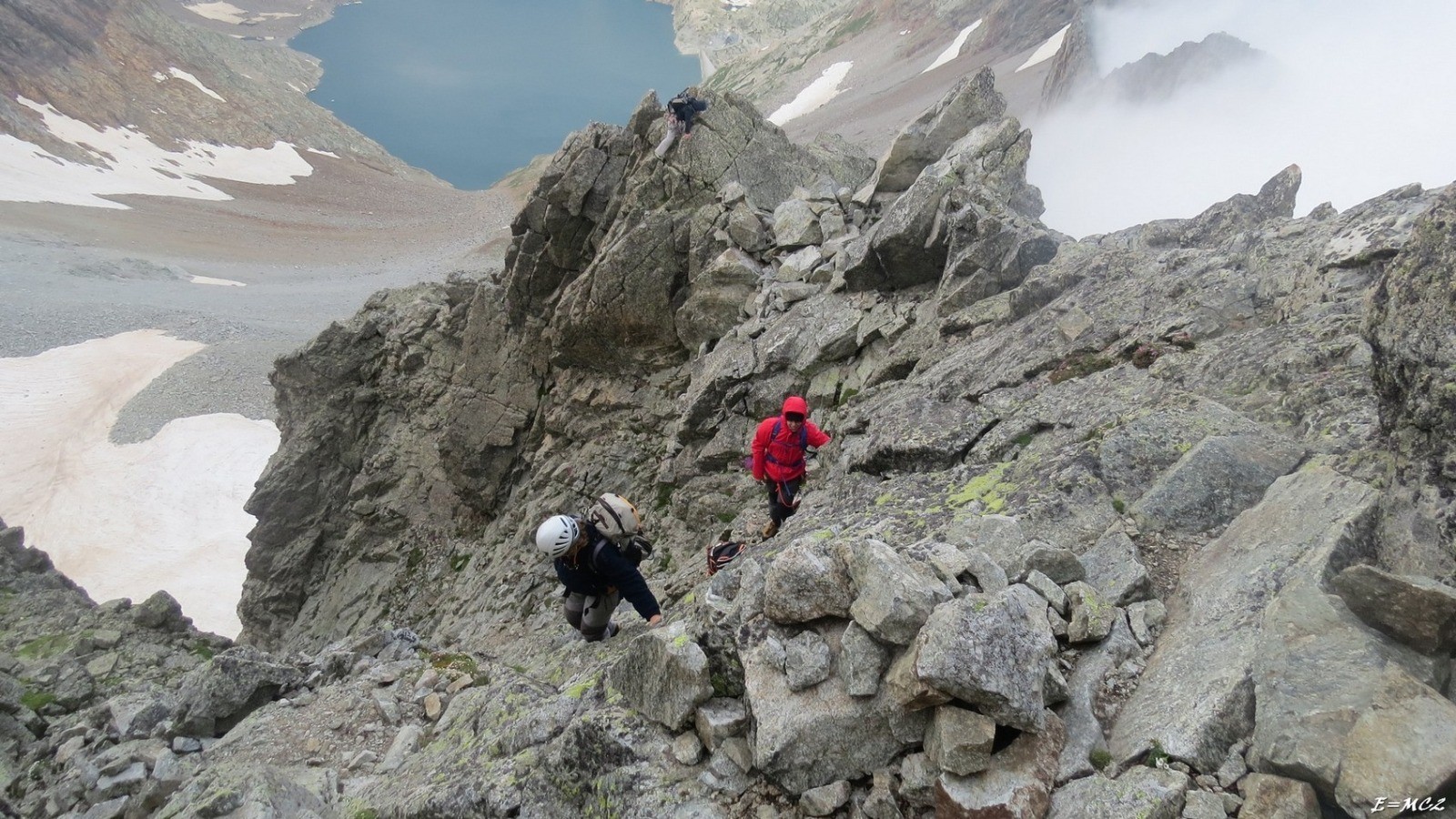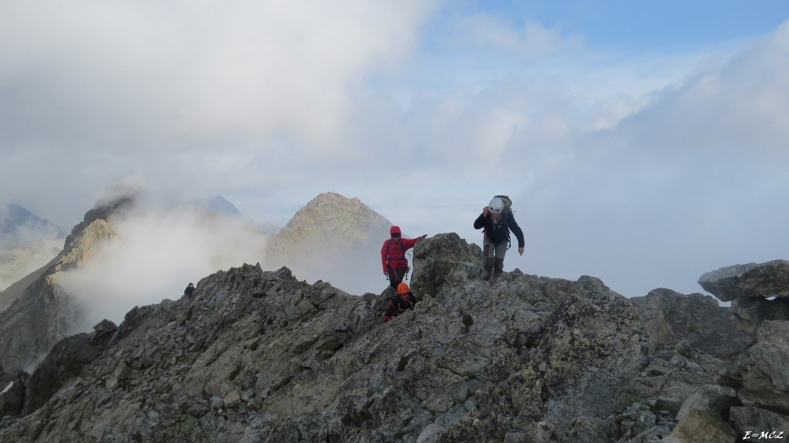 Il était prévu de faire la traversée des Pics des Crabioules de la Brêche Mamy au Col des Crabioules. Un vent très violent est venu perturbé cette course, on a fait demi tour au Pic des Crabioules Occidental.