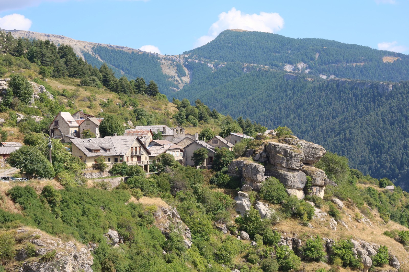 le départ se fait sur le parking à l'entrée du village de Peyresq, traverser le village pour prendre sur la gauche le PR balisé jaune la direction du Plan du Rieu .