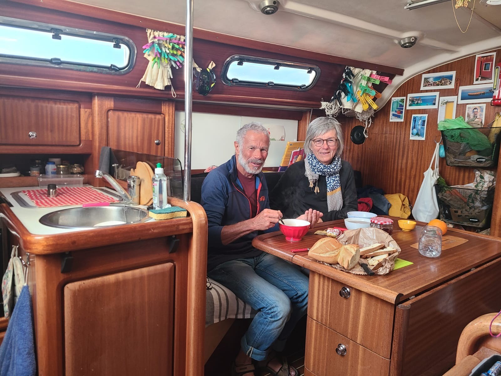 Comme c'est agréable un petit dèj sous le beau temps. Une tentative de mettre les voiles à vite été matée.