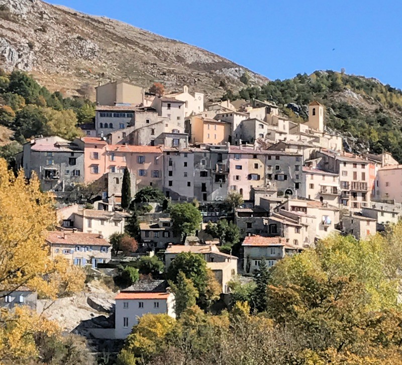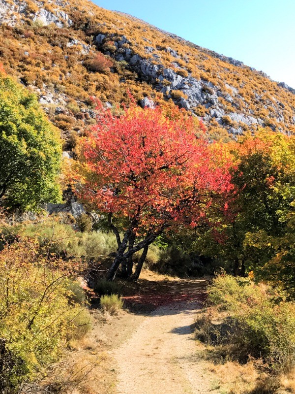 Super ballade avec des vues magnifiques sur Coursegoules et les paysages environnants. Site toujours magique de la Chapelle St Michel. Et un en cette saison, les rouges des feuilles des arbres........