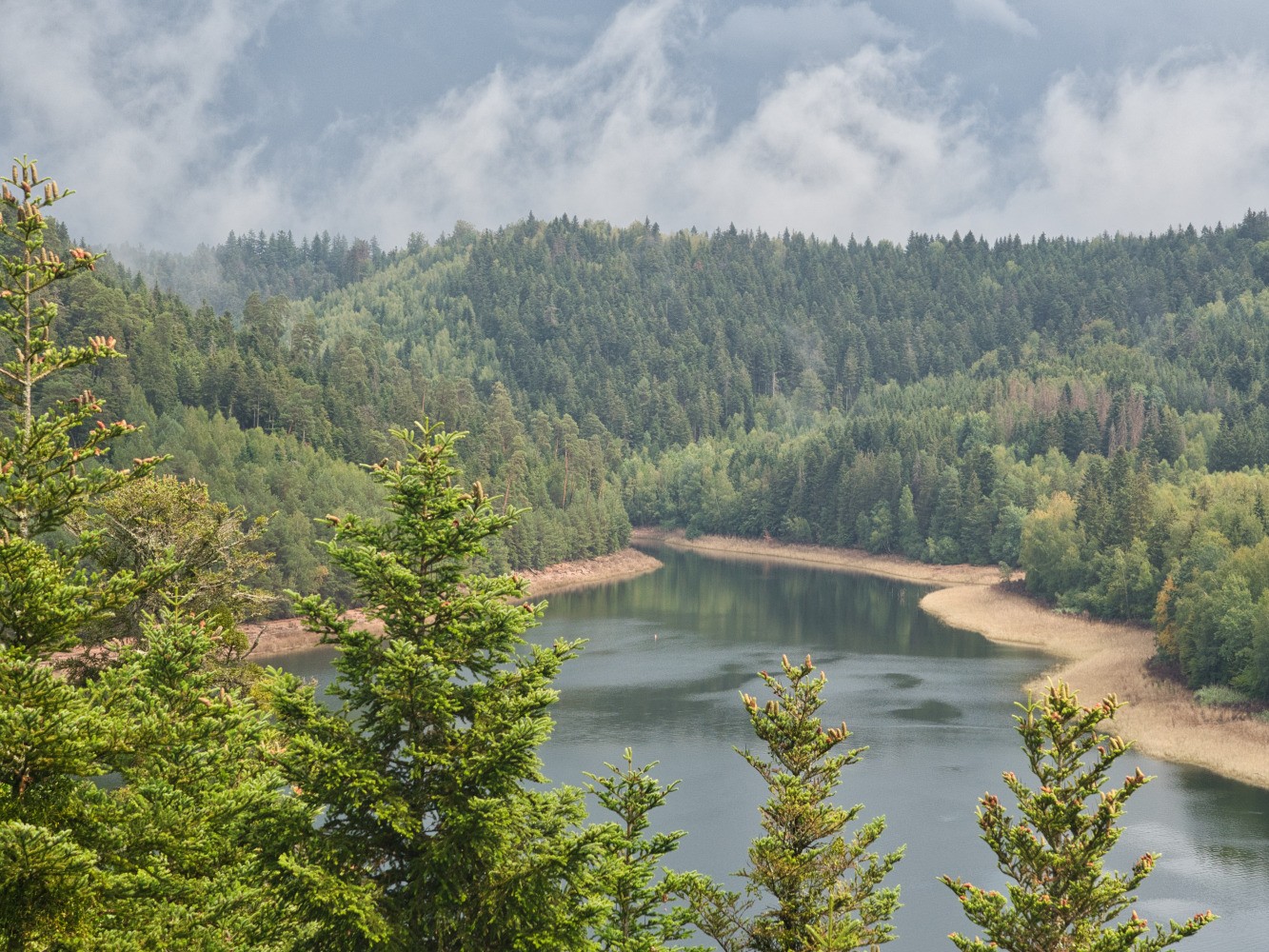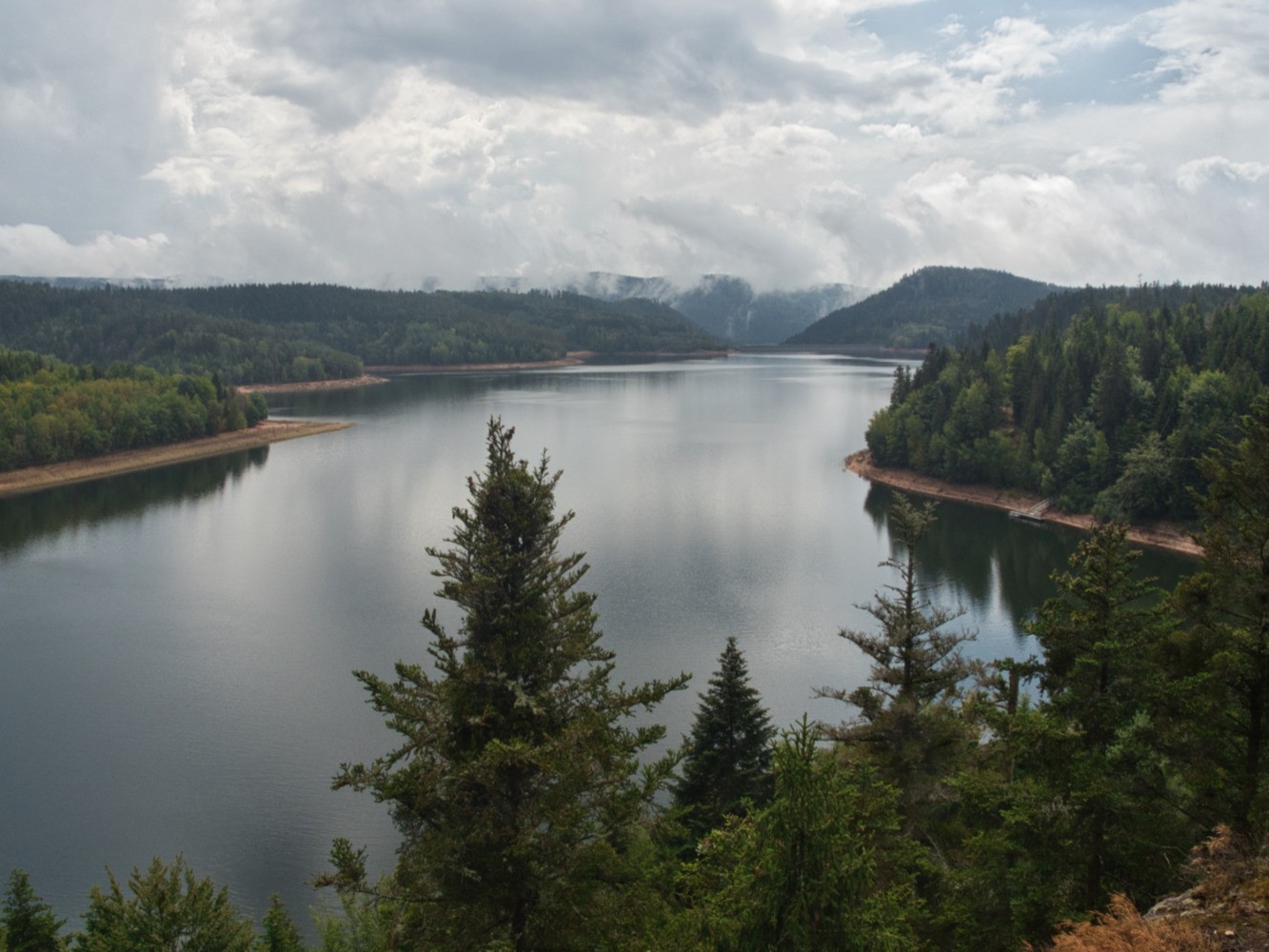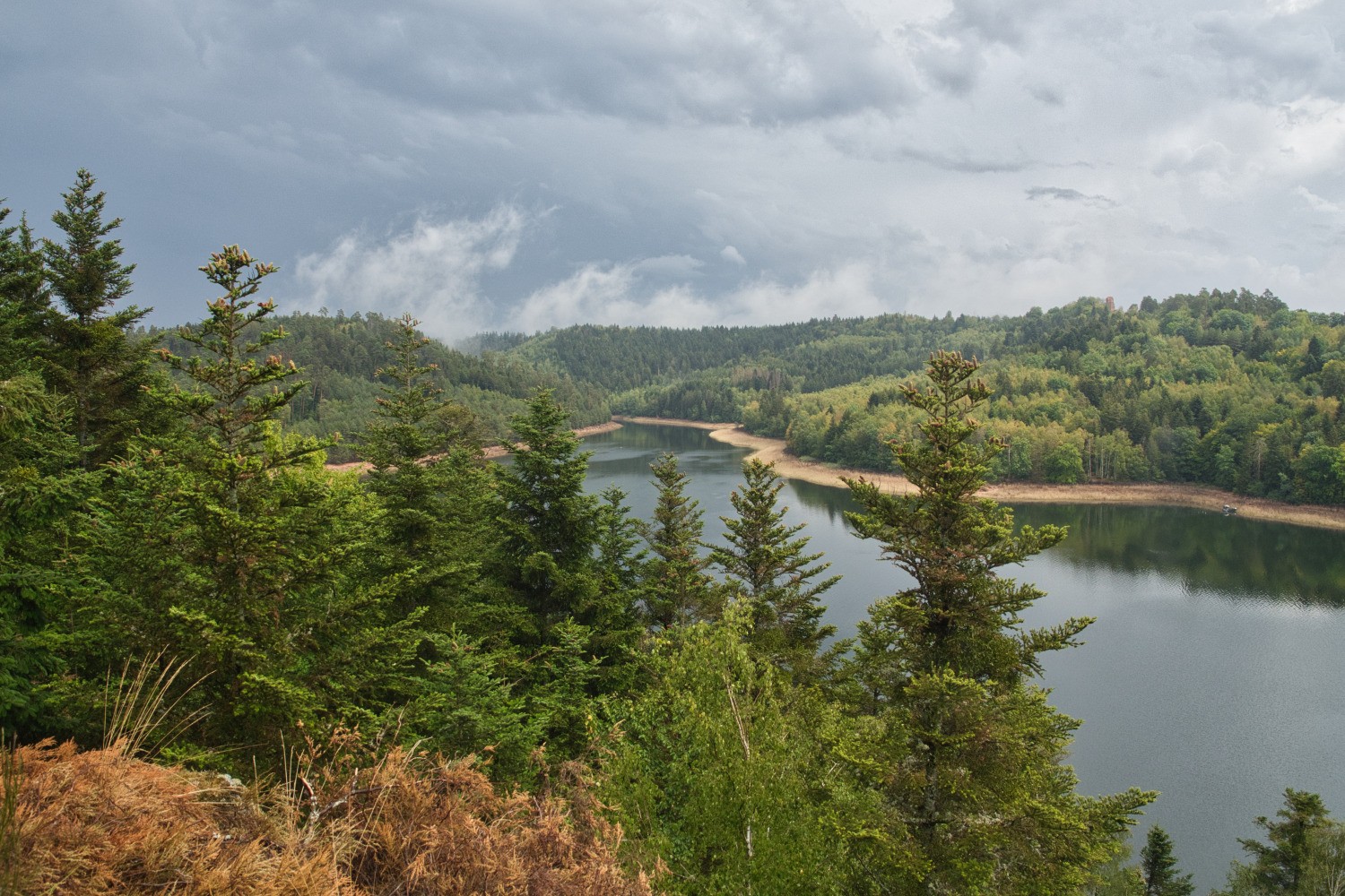 Départ de Badonvillers pour rejoindre le lac de Pierre-percée au niveau du rocher des corbeaux. Beau point de vue général sur le lac et ses environs.