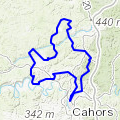Rte Boucle départ Cahors Beau & long parcours au départ de "Bellevue" nous fait rejoindre "Laroque des Arcs" puis monter sur Francoulès et direction Nord pour entamer le retour à St Germain du Bel air et Concores. Descendre sur St Denis Catus, Catus Crayssac, Mercues. De là on rejoint la vieille Rte de Paris pour revenir sur Cahors »