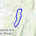 Points de passage : Le Battoir, La Roche Fendue, L'Abergement-de-Varey, Stèle La Montagne, Grange de Ratelier »