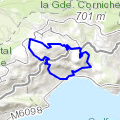 Fort de La Revere - Laghet La TurbieDépart à La Turbie, parking du rond point de Nice - Chemin de La Forna - Fort de La Revère - Descente vers l'autoroute puis la route de Laghet par les balises 702, 703, 704, 706 - Prendre le vieux chemin de Laghet par les balises 632, 629, 628 jusqu'au sanctuaire - retour au parking par les balises 621, 622, 597, 596, 548, le Col de Guerre et le Mont de la Bataille. »