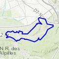 Parcours Fabuleux, en majorité sur pistes et routes, passage au lac de Peïrou, et sur les crêtes des Alpilles, puis à proximité de St Etienne du Grès, retour »