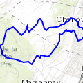 Couchey - Rente Chamery - Couchey Perrigny-lès-DijonParcours dégagé dans sa montée vers la Rente Neuve (514 m), puis entré dans les bois sur un chemin carrossable pour 4x4 qui descend (440m) avant la monté vers la Rente Chamerey. Large piste en direction de Fixin que l'on quitte sur la gauche à la cote 495 pour rejoindre le haut de la combe Laveau. Descente en sous-bois dans la combe puis arrivée sur Couchey par les vignes »