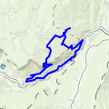 Prendre la piste une centaine de mètre et bifurquer à gauche sur une ancienne piste qui monte raide. Lorsqu'elle croise une autre piste un peu plus haut continuer en face. La piste devient très encombré de végétation puis rejoint une piste venant du »