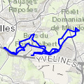 Départ via les coteaux de la Bièvre jusqu'au arcades de Buc, un petit tour autour des étangs, puis traversée du plateau le long du golf national de Saint Quentin pour rejoindre la vallée de la Mérantaise à Chateaufort, puis retour par les coteaux de l'Yvette »