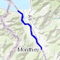 Voici un tracé le long du Rhône partant de la ville d'Evionnaz et allant jusqu'à l'entrée de Riddes.
