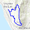 vue du Lac d'annecy, par le Mont Veyrier VillazDepuis le parking au plan de sagran, prendre le sens du circuit vers l'Ouest. De là vous pouvez longer Sud-Est la ligne de crête du Mont Veyrier, aller à la table d'orientation puis descendre plein Nord par la piste carrossable, pour rejoindre le parking. »