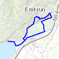 RSPG CODERS circuit vin chaud Embrun Saint-SauveurA partir de Baratier prendre sud ouest, la rue qui mène vers la RN 94 le long du canal puis traverser la RN 94 et se diriger vers la digue du barrage. Monter sur la digue et aller vers le pont du giratoire traverser le pont et faire le tour du plan d'eau d'Embrun. Prendre ensuite le chemin du pied du roc faire une boucle qui ramène au pont. traverser et rejoindre Baratier par la nouvelle zone »