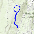Départ peu avant les gorges du Furon (pt 867 sur la carte) . départ rive droite le long d'un champs. Au moment ou le chemin semble s'orienter rive droite, monter plein Ouest (2 tonneaux bleus) et franchir une vire un peu expo. Suivre ensuite le lit et traverser de nouveau rive gauche.