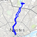 NantesCircuit au départ de la gare de Nantes, en passant par la Place Charles Leroux, Le Jardin des Plantes, rue Georges Clémenceau, rue Gambetta, rue Sully, Quai Henri Barbusse, promenade de l'Erdre, Port Boyer, l'Eraudière, le Pont de La Beaujoire, Port Barbe, La Desnerie, Allée des Muriers, Rue de La Bérangerais, Chemin de La Pièce, Chemin du Vieux Moulin, Chemin du Meunier, rue de l'Europe, ru »