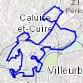 Départ depuis la boutique LVE 51 Grande Rue de la Croix-Rousse, puis quartier Philippe-Delassalle, A/R rue d'Ypres, Cuire le haut, rue Pierre-Brunier, Caluire montée des Forts, île Barbe, quai Clémenceau, montée des Esses à 17 de moyenne, »