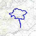 Remontée assez raide par Le Vernay jusqu'à 728, puis descente vers le Dronau et courte rampe pour rejoindre le parking. »