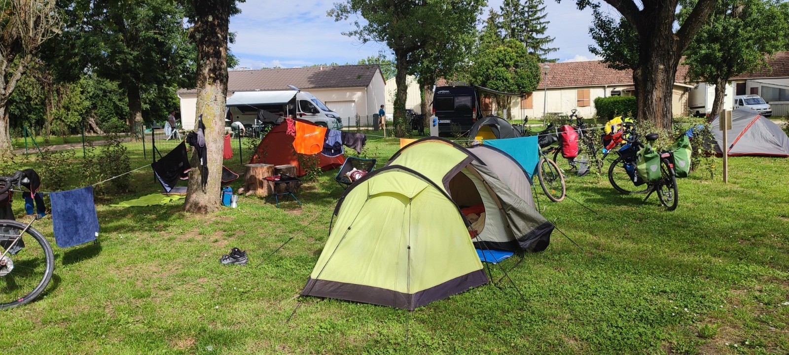 Le temps est de plus en plus chaud. Nous nous arrêterons à Charmes car pas de camping avant 30 km après. Camping municipal sympa en bord de rivière avec beaucoup de vélos.