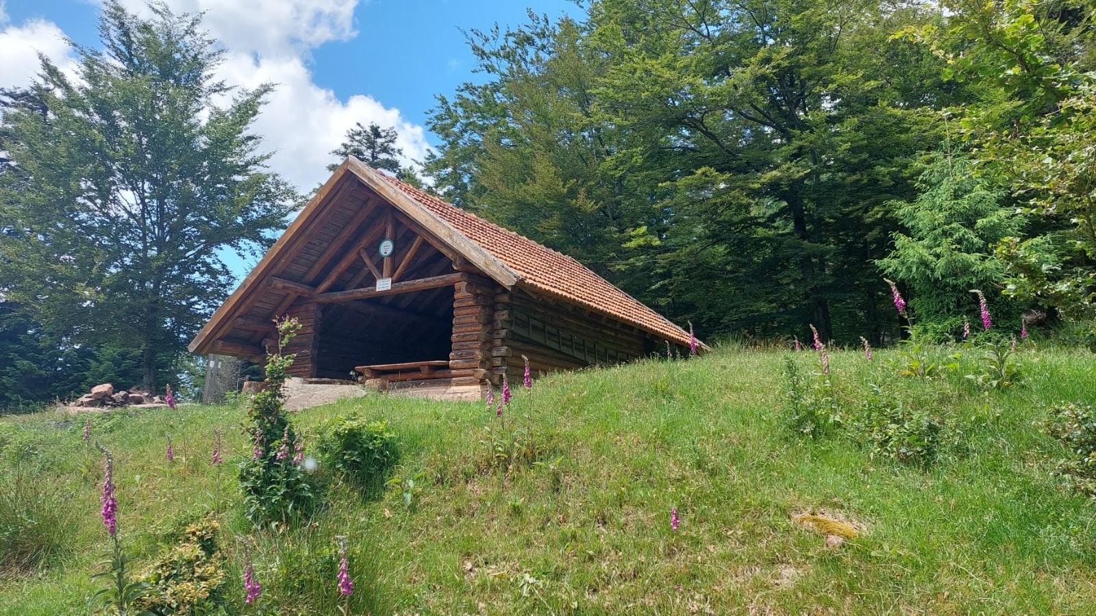 Départ de la MF du Petit Wisches - disque jaune en direction du Petit Donon puis chevalet rouge en direction du GR 53, puis suivre ce GR jusqu'à la baraque carrée.Pause, on a fait 9,5 km. Retour par Rouge-blanc-rouge jusqu'au point de départ;