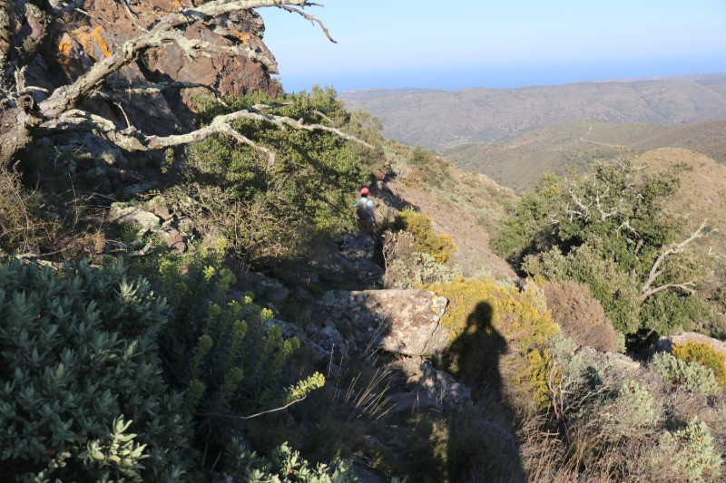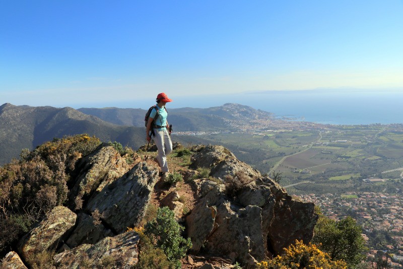 Mas Pelou , prendre le chemin balisé jaune (bien raide) qui longe les habitations par la droite. Quelques passages techniques vers le sommet imposent de mettre les mains. Pour éviter de passer par le pt OSM 515m ou pourra couper sous une petite falaise (200 m hors sentier) et rejoindre la croupe qui mène au