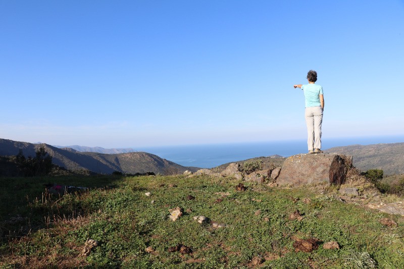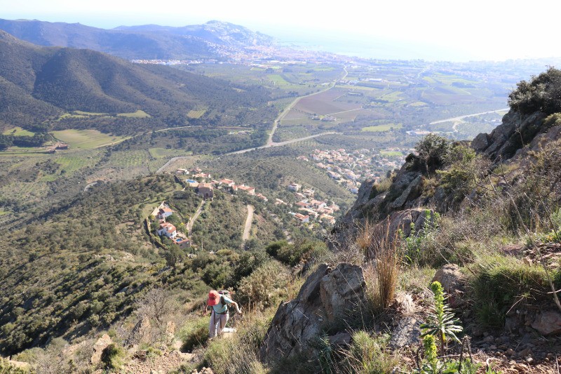 col de Saint Genis. De là suivre le chemin bien marqué qui traverse le route (gaffe). Après la route, on longe des cultures d'Oliviers.