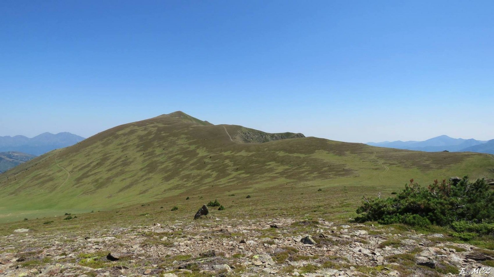 Du sommet prendre la crête sud, traverser le Pic de la Coumette, et poursuivre par la crête, décrivant un large arc de cercle sur la droite, jusqu'à rejoindre le GR 10 au niveau de la Crête de la Lhasse.