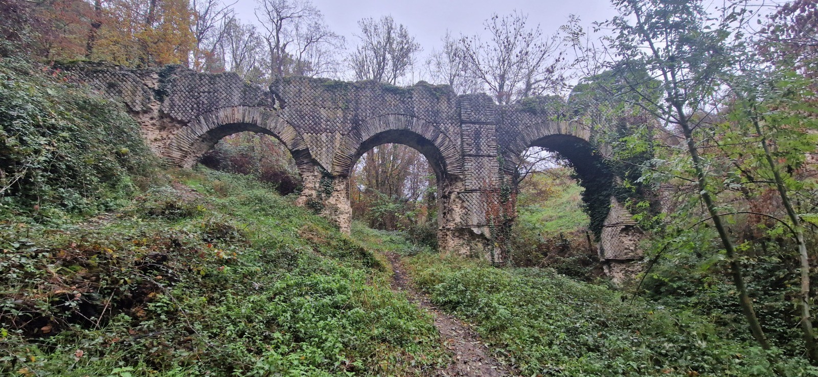 A la sortie de la Gare prendre à droite la rue René Charre sur 500 m puis à gauche le chemin du Grand-Soulier sur 150 m jusqu'à la route de la Libération; là prendre à droite(rester sur le coté gauche de la chaussée). partir par le chemin sur la droite pour rejoindre la Grand-Croix. A l'intersection continuer tout droit sur la route, puis prendre ) droite le sentier pour rejoindre le hameau de Charmet, continuer en face pour descendre en direction des pompes puis sur la gauche vers la passerelle traverser le Bossancon. Prendre à droite pour aller jusqu'au hameau de Barbier le bas, continuer la route de l'ouest au milieu des haras jusqu'à la route de Saint-Joseph, prendre à droite puis le premier chemin sur la gauche en direction des piles. Aprçs l'ancien moulin prendre sur la gauche pour traverser le Bozancon et continuer en face pour remonter le sentier jusqu'à la route des aqueducs