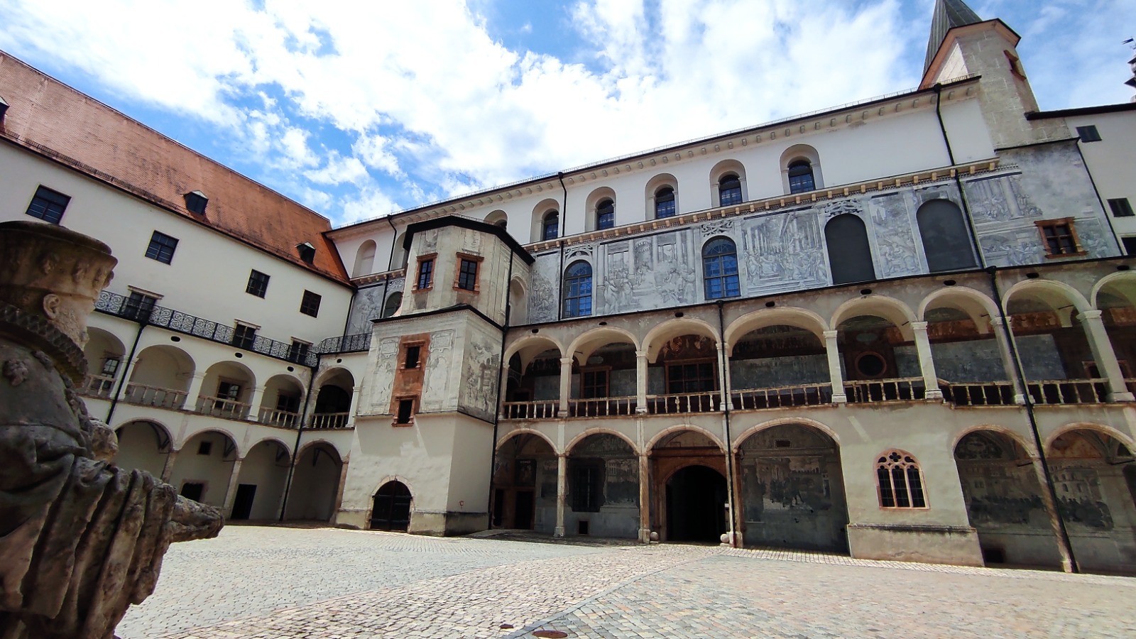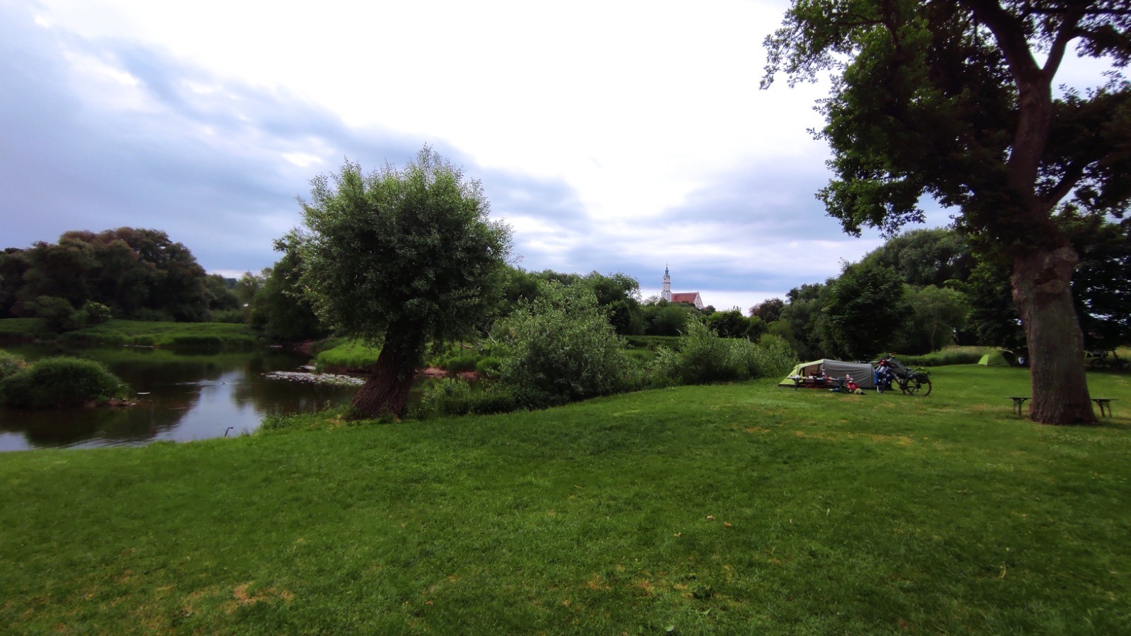 Timing parfait pour le temps. Repas midi à Neubourg ( beau village, château et église) au soleil. Du coup, deux cafés, on sait jamais. Puis tente plantée, douche prise et juste le temps de m'abriter de la pluie pour faire ce résumé de la journée.