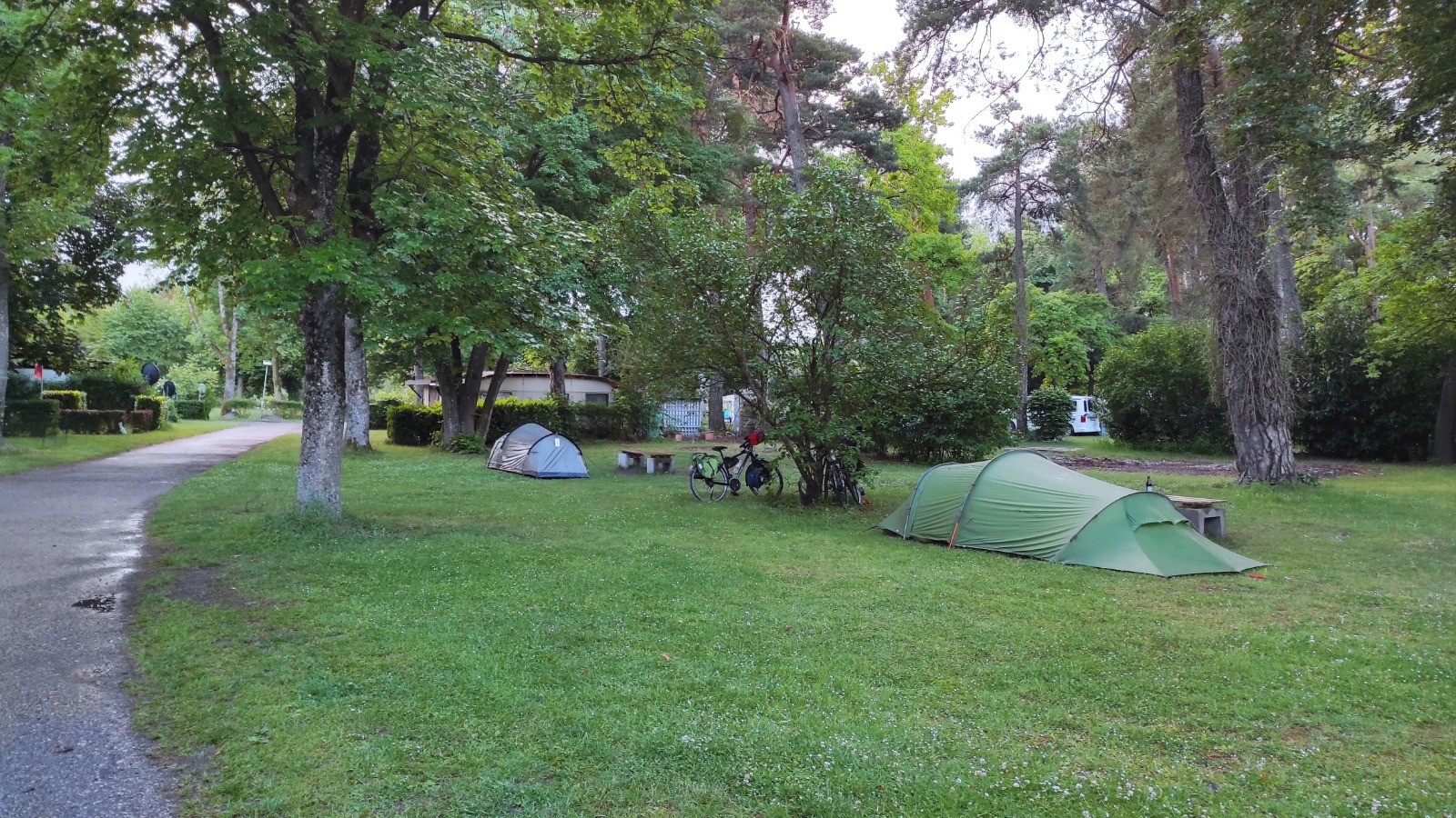 Camping super chère, je n'avais plus l'habitude. Il faut dire que c'est le premier vrai camping que je fais en Allemagne. 23?, sans emplacement, dans un petit coin pour les tentes. Heureusement que l'on n'est pas nombreux. L'eau est comprise nous dit l'accueil.