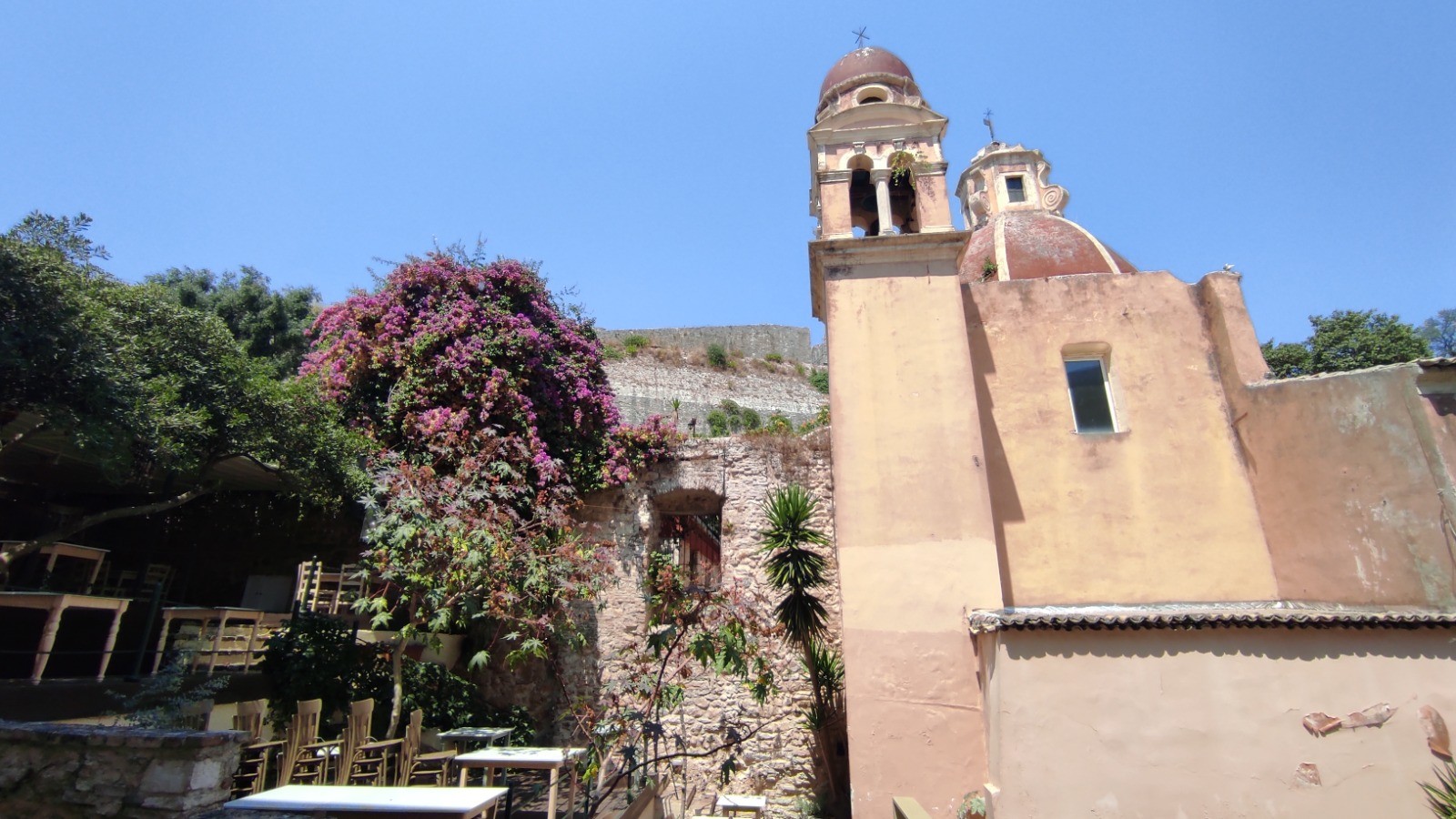 On mouille à la pendille que je tire bêtement dans le mauvais sens et allons récupérer Patrick et Anne à pied à travers le fort où se situe la marina.