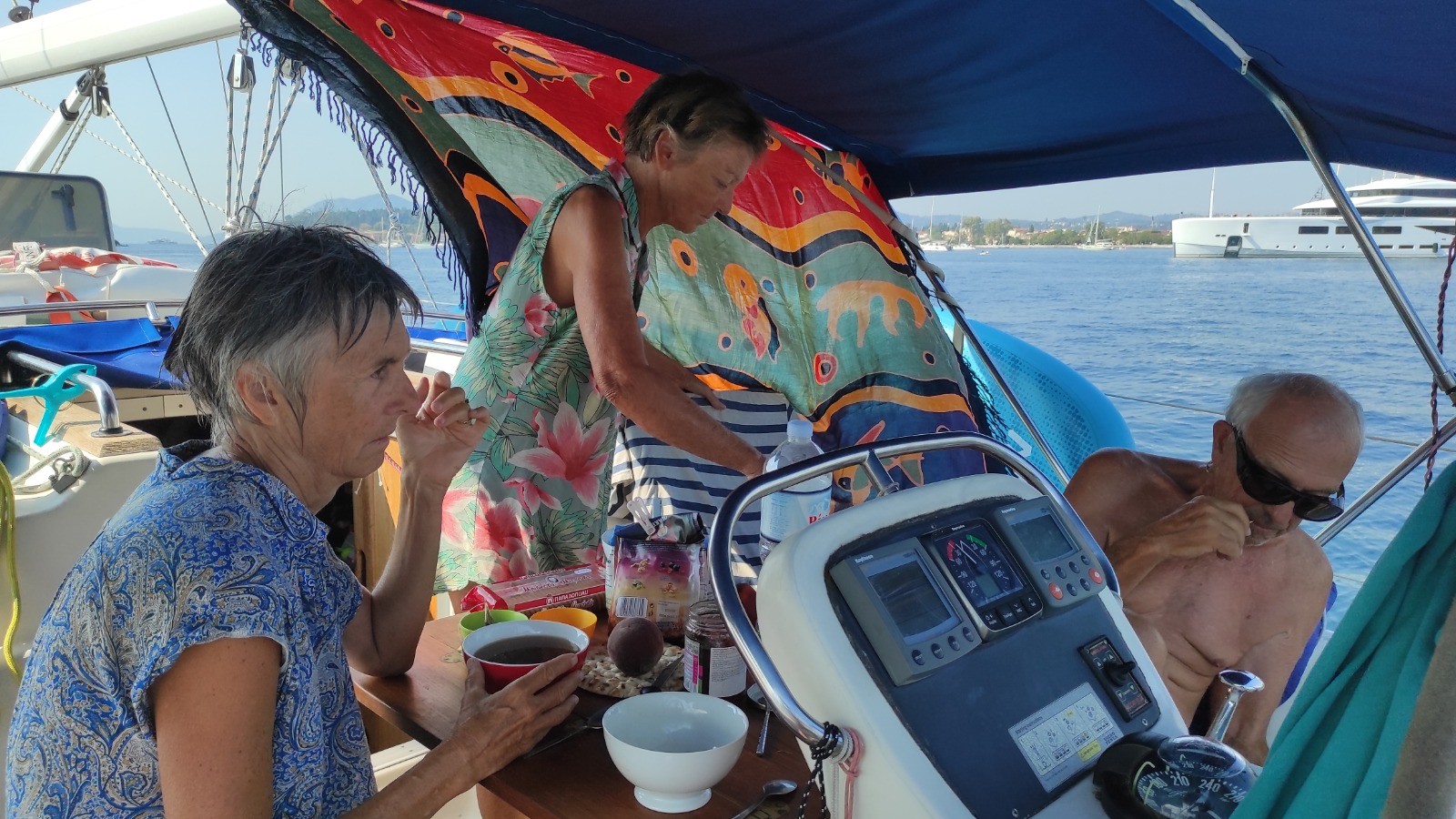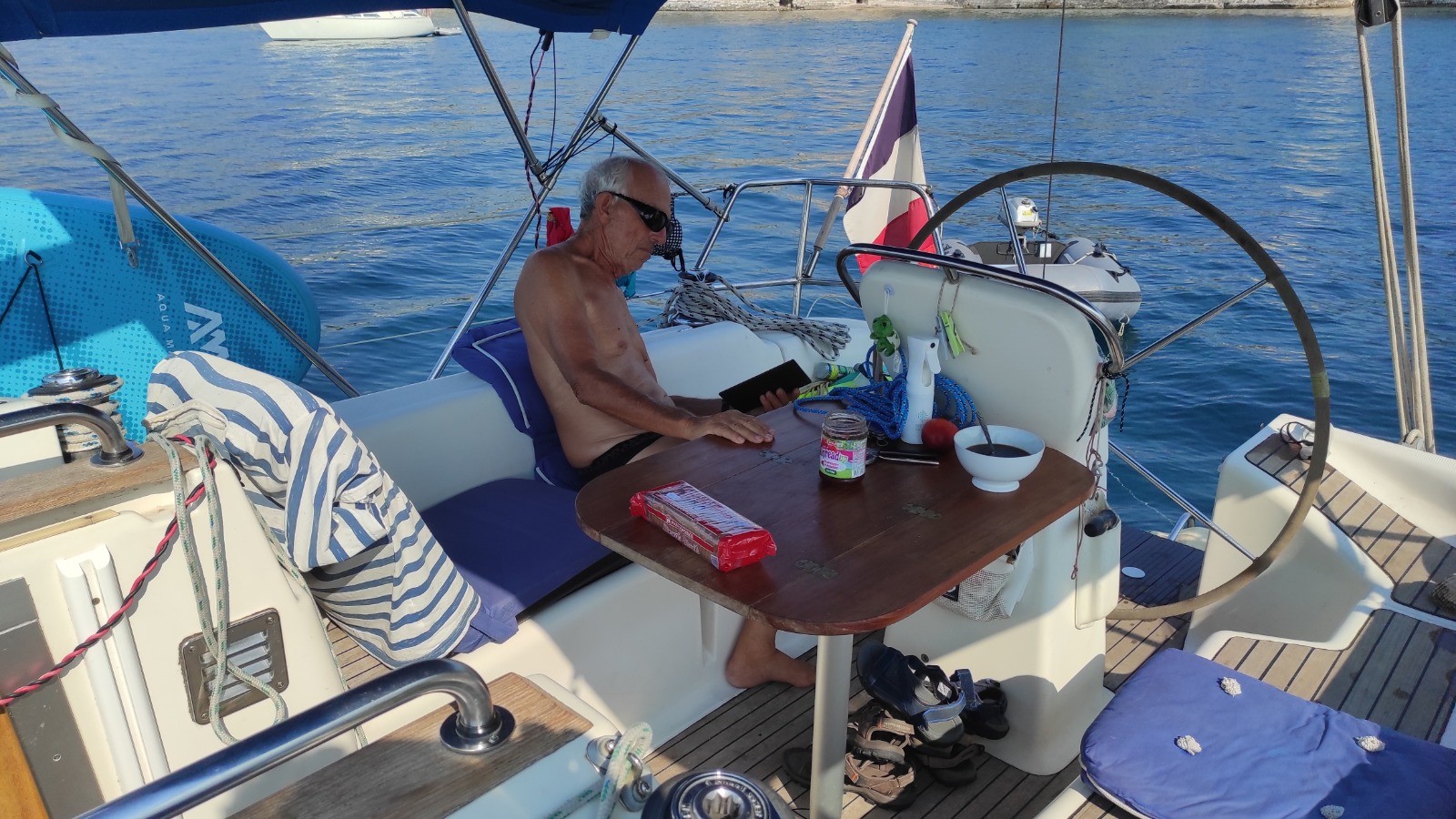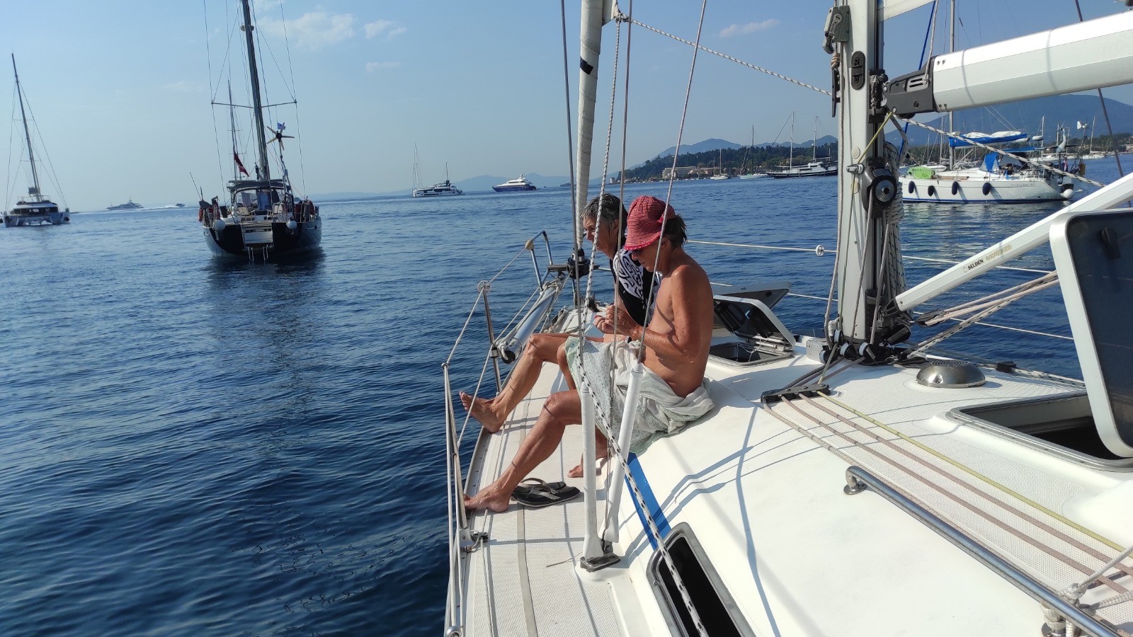 Ultime dernière navigation pour aller récupérer Patrick et Anne au vieux port et aller mouiller dans un endroit plus abrité pour leur première nuit en mer.