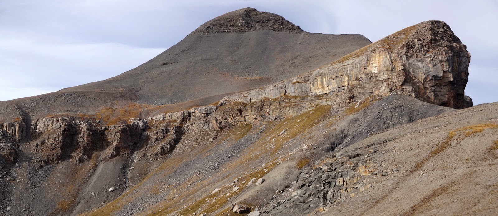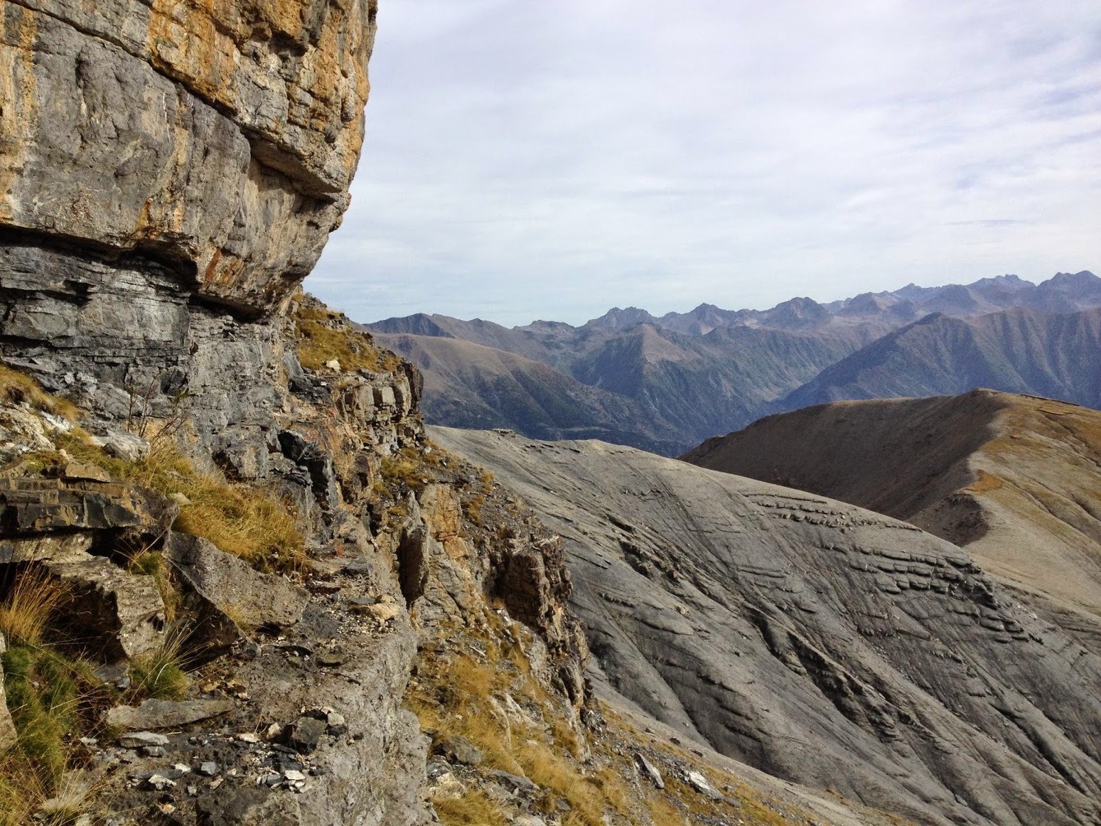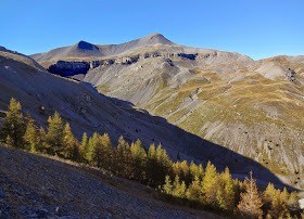 Hors sentier à partir du vallon de la Gourgette, tête de Varélios, baisse de petit Valet. Pour atteindre le mont Mounier par la face est : trouver le passage dans la barre puis monter sur la crête nord du Mounier avant de virer au sud vers le sommet. Derniers mètres assez techniques, attention aux chutes de pierres. Descendre ensuite vers le petit Mounier et le col de Crousette par la voie normale. Vallon de Sallevieille (torrent dont l'eau est potable), col de Crous. Ici, possibilité de prendre vers l'est pour traverser toute la crête de la montagne de l'Alp. Ce jour là, j'ai dû faire demi-tour à cause du Mistral et trouver une autre voie sur le versant sud.