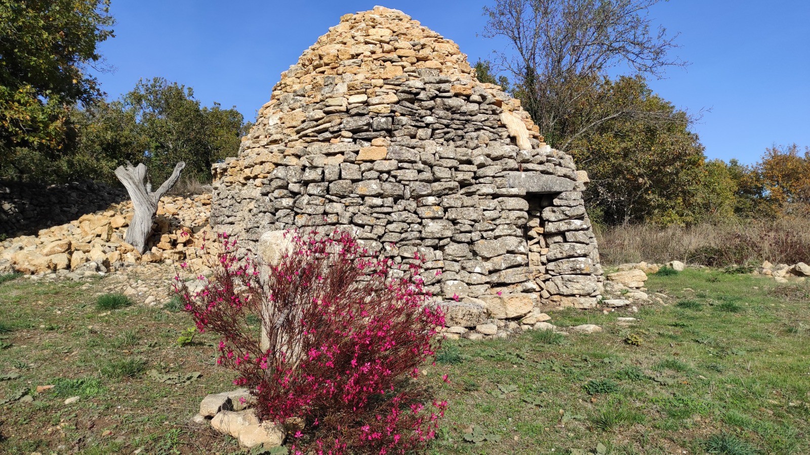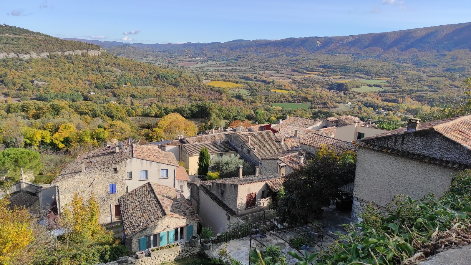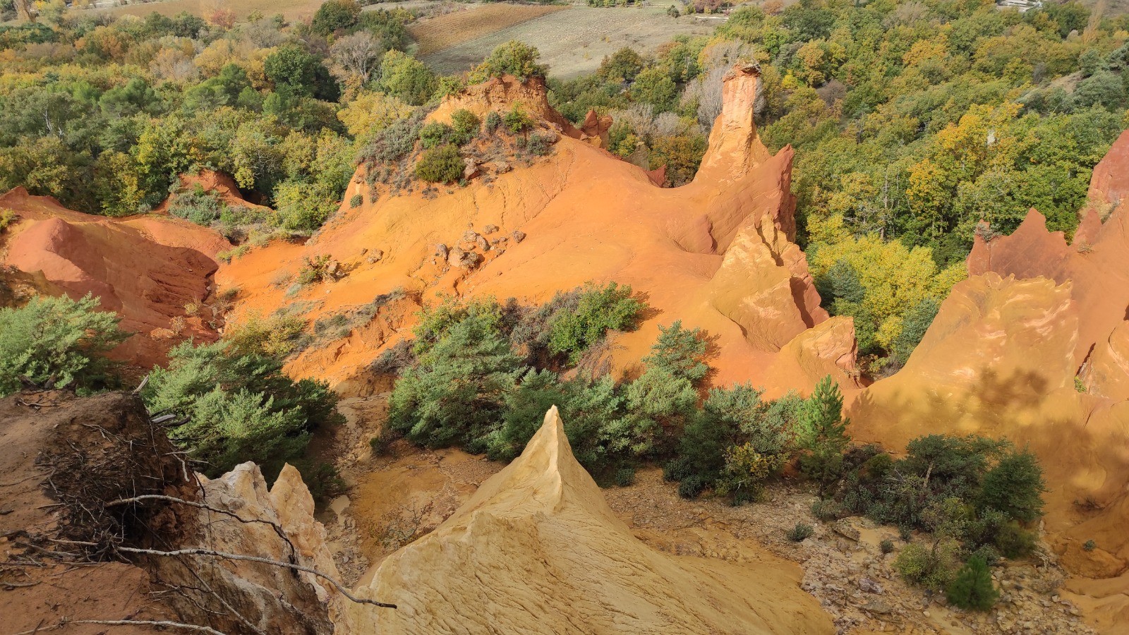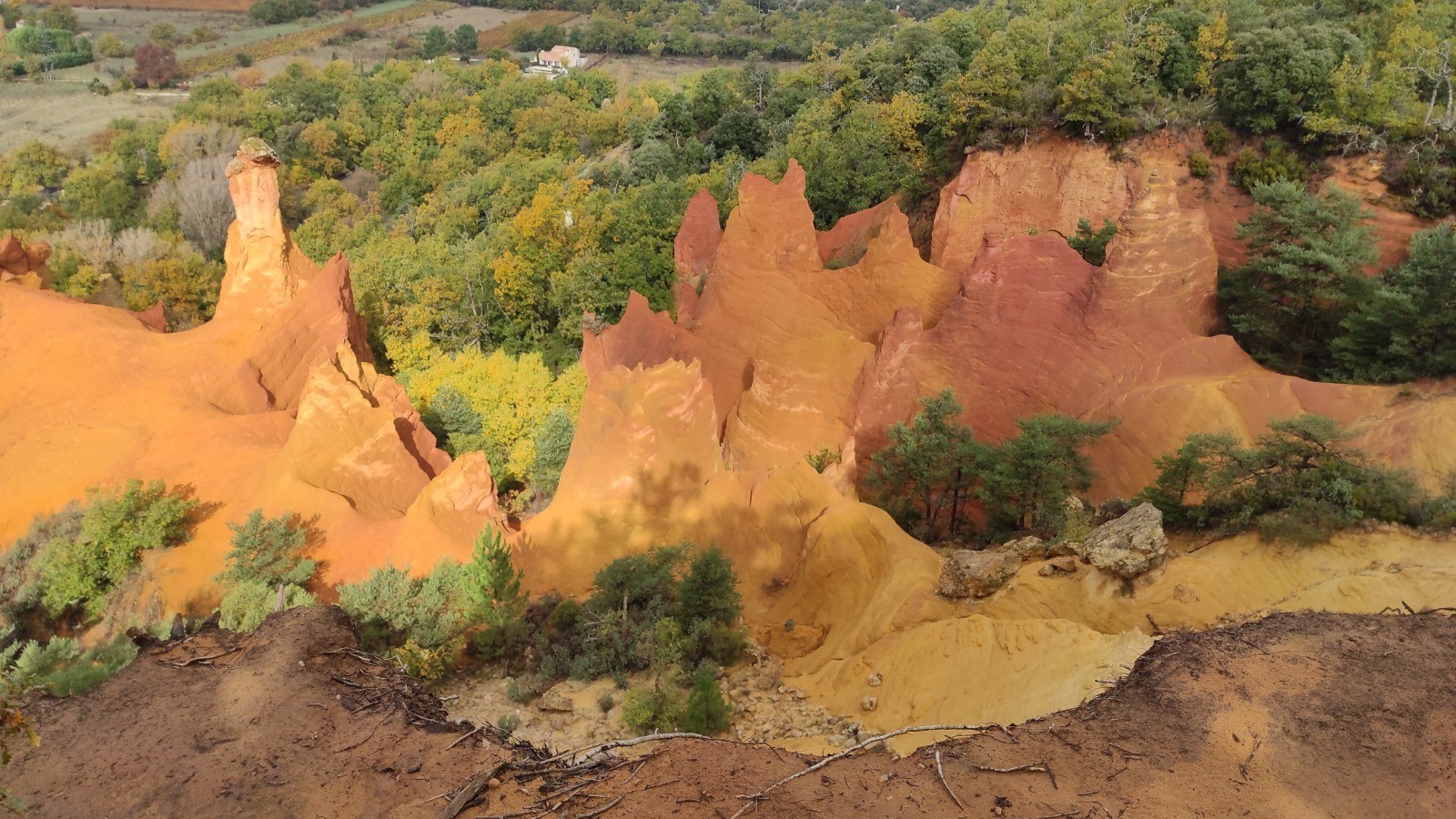 Nous commençons la journée sans pluie, mais avec un ciel couvert. Magnifique ballade à pied dans le Colorado provençal puis nous reprenons les vélos pour rejoindre le circuit de Caseneuve. Dure grimpette en VTT au début pour rejoindre une petite route déserte. On mange de justesse, il est 14:30 hr à Caseneuve. Nous rejoignons ensuite rapidement St Martin de Castillon puis longue montée pour arriver à Viens. Retour à Rustrel en passant par Gignac.