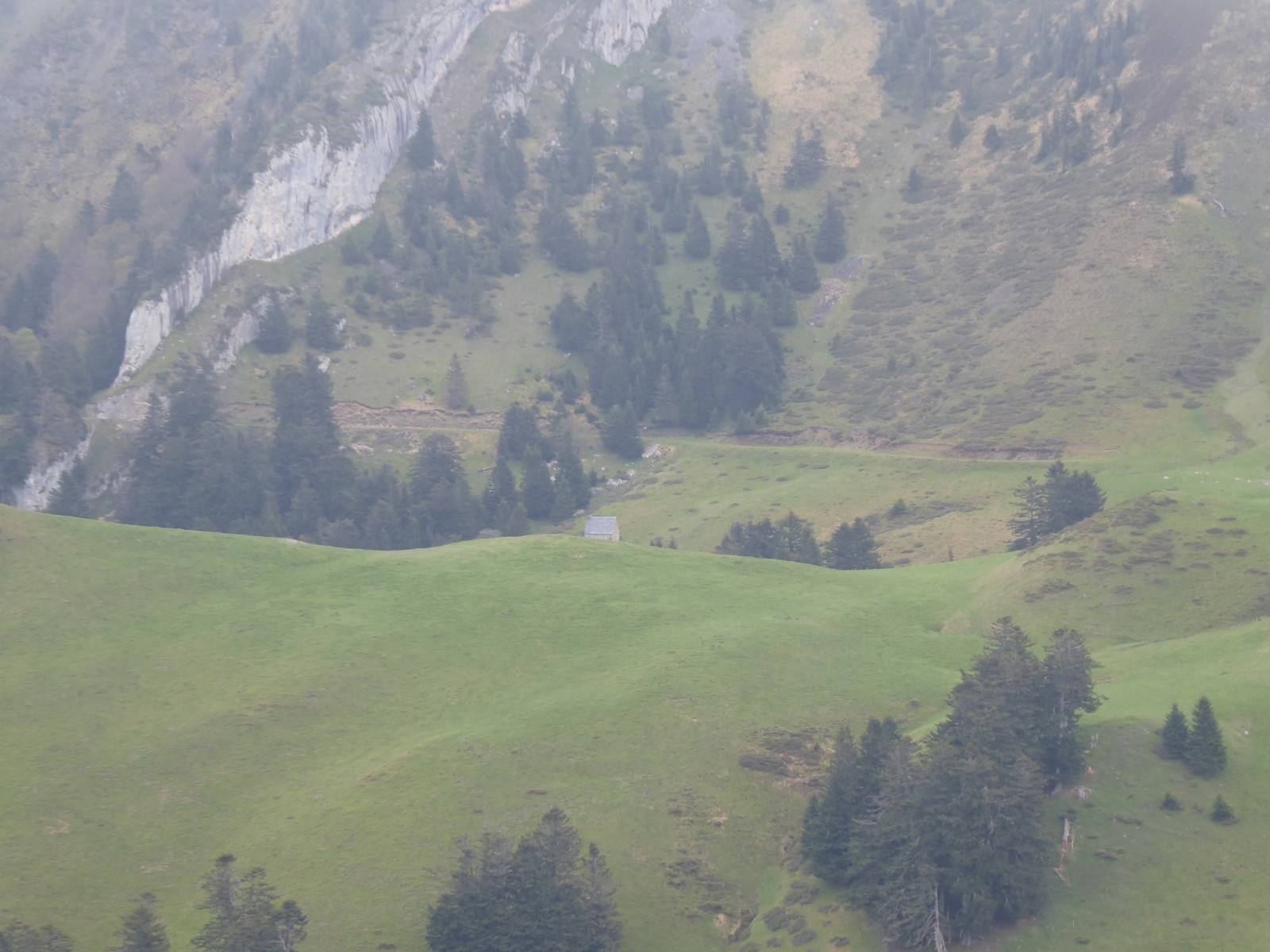 La montée est soutenue jusqu'au sommet du Cap des Pènes. La météo ne sera pas au rendez-vous, nous privant ainsi du panorama. Le reste du cheminement demande de l'attention jusqu'au Montarrouy. La cabane de Camous est en bon état et nous a permis d'être à l'abri le temps du repas. Les bourrasques de vent de 20 à 40km/h ont été fréquentes, faisant ainsi descendre le thermomètre plus que prévu :....jusqu'à 6°; avec un ressenti inférieur de 3° environ . C'est la montagne , il ne faut pas l'oublier. Une belle course cependant.