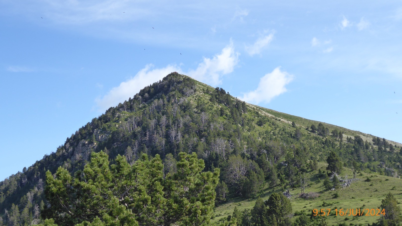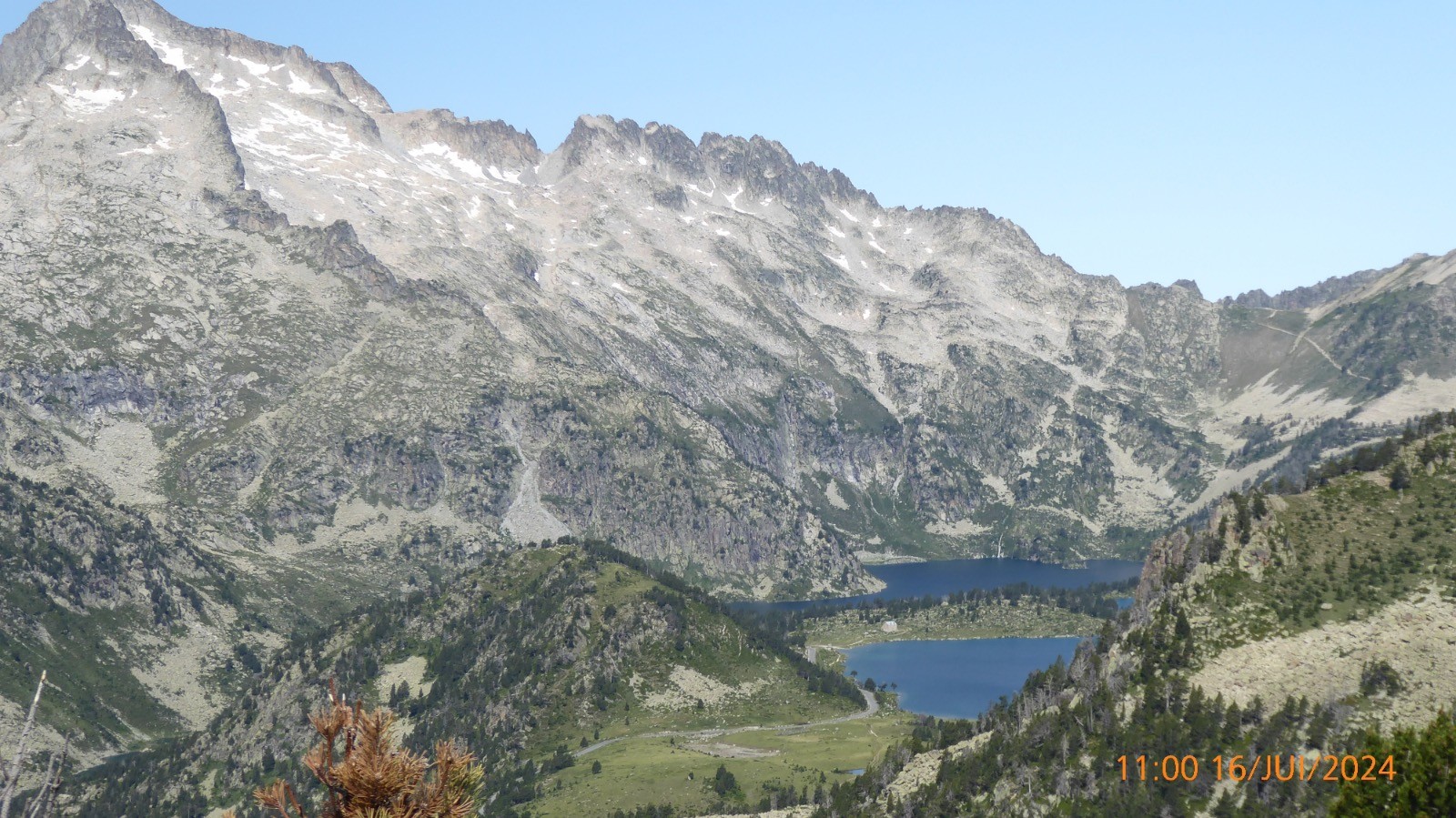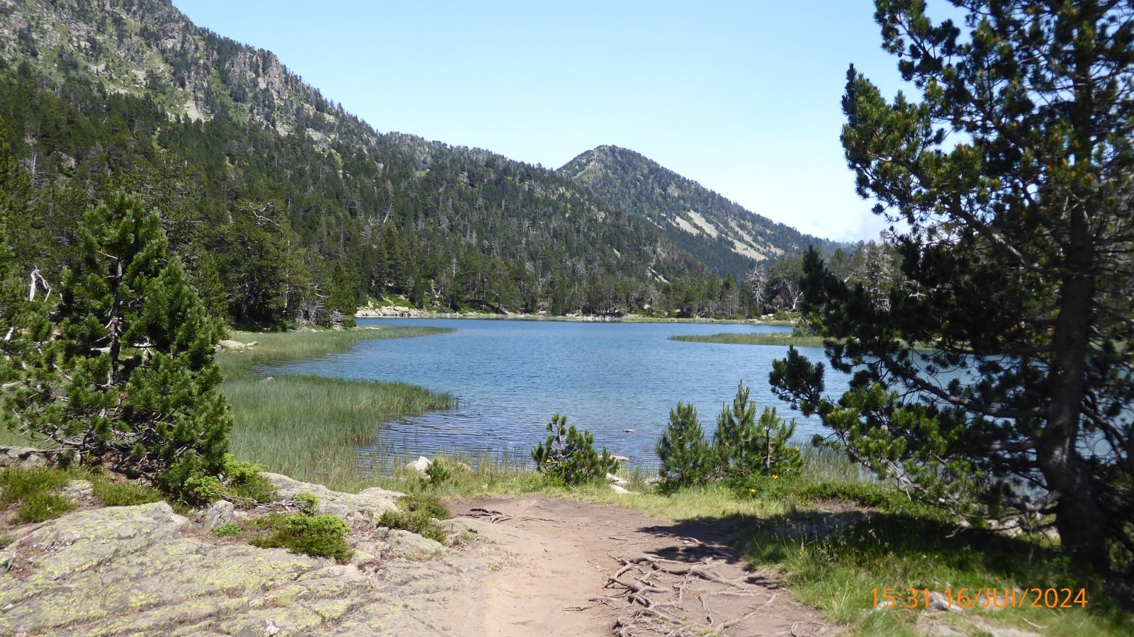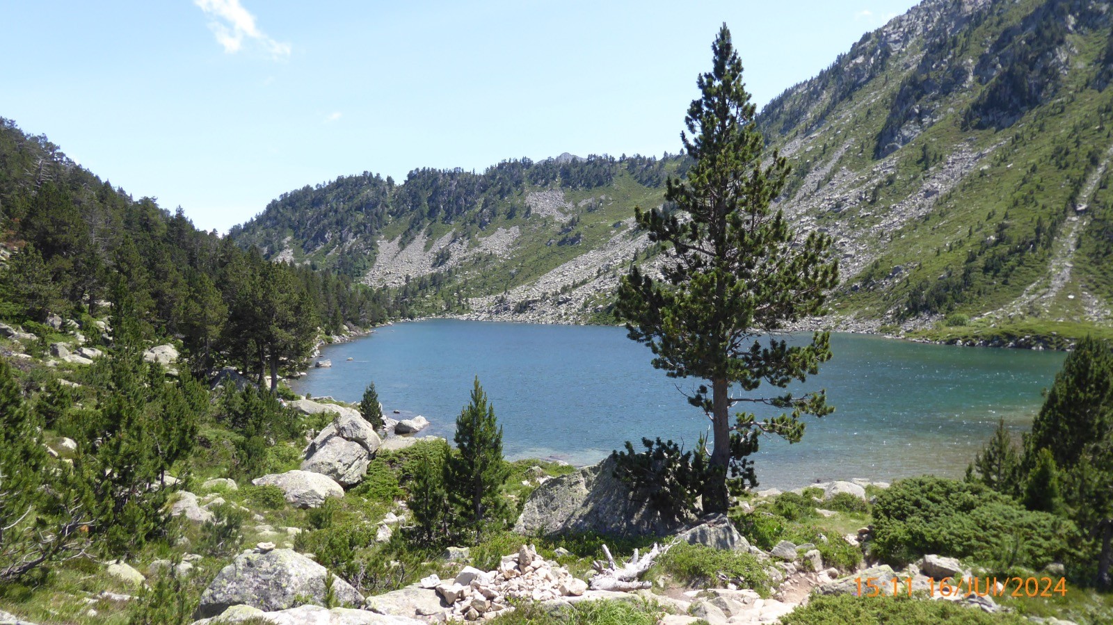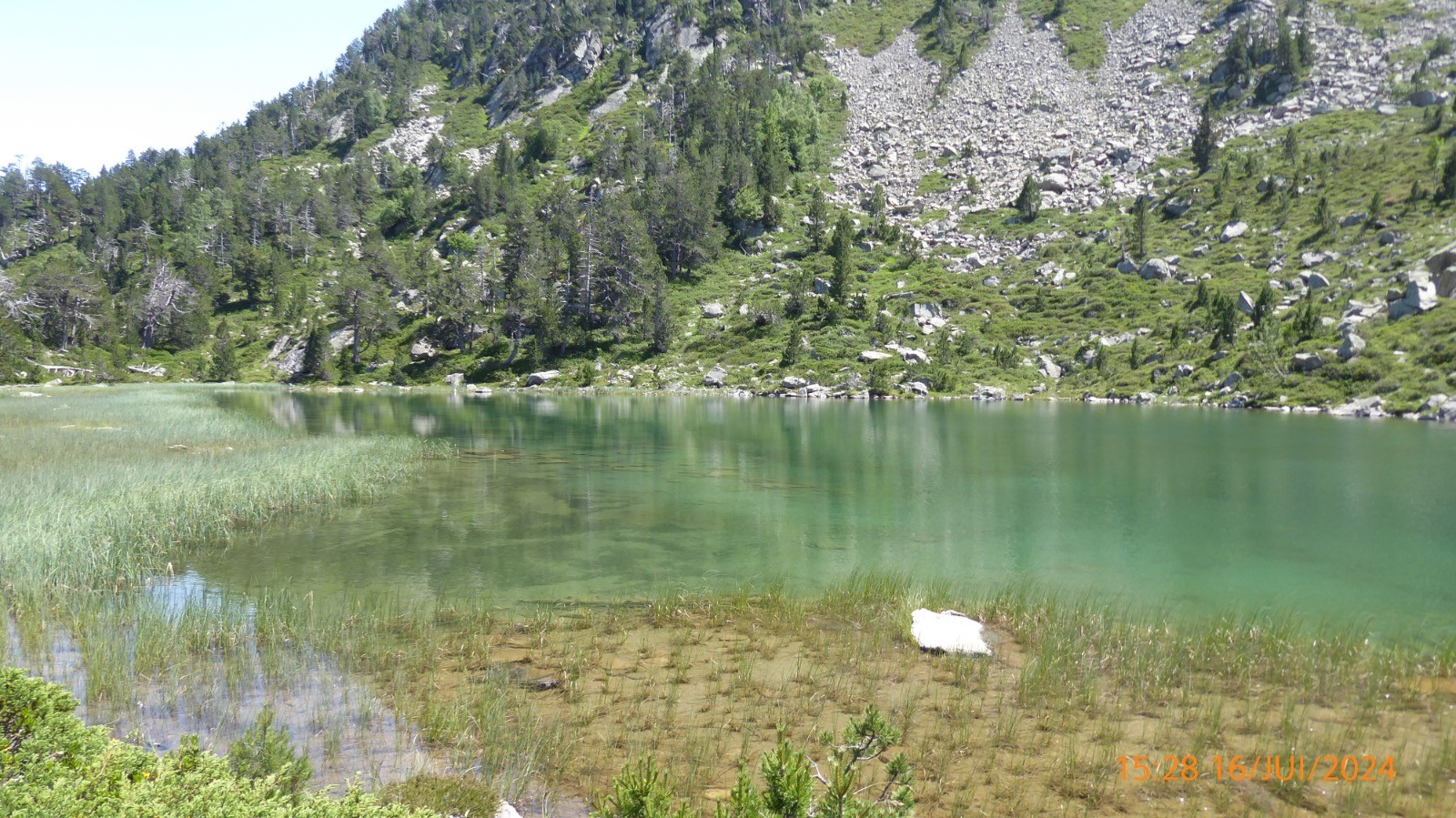 Le col est à 2260m et la montée au Soum de Monpelat est bien indiquée. Le point de vue du sommet et magnifique. Pic du Midi de Bigorre, Estragne, Ramoung, Néouvielle , Trois Conseillers, Turon de Néouvielle, Crêtes de Alharisses, Pic d'Estragne, Campbiel, Col de Madamète, Hoquette d'Aubert , Pichaley, Col de Bastan etc etc La mer de nuage nous a privé du lac de l'Oule, par contre nous avons vu les lacs d'Anglade, du Cascaret. La redescende s'est faite en longeant le lac d'Aumar par le sentier nord ouest au pied de la Crête d'Estibère.Ce sentier est praticable à part deux passages dans les blocs, mais la vue sur le lac est magique.Le sentier rejoint le croisement des sentiers qui descendent de la Hourquette d'Aubert et du col de Madamète et rejoint donc le GR10. Ce lac d'Aumar situé à 2192 m, a une superficie de 25 hectares et une profondeur de 24m. Il est alimenté par les eaux du vallon du Pic de Madamète et se déverse dans le lac d'Aubert. Le lac d'Aubert lui, est à 2148 m, sa superficies est de 45 ha, il est alimenté par les petits glaciers de Ramougn et de la brèche de Chaussenque et par le trop-plein du lac d'Aumar. Son émissaire se déverse dans les laquettes puis alimente le lac d'Oredon. Son nom occitan signifie "eau verte", mais il peut changer de couleur selon la lumière et la saison. La descente vers les Laquettes se fait par un beau sentier bien marqué. Les Laquettes qui se situent à partir de 2080 m, couvrent environ 9ha. Les Laquettes communiquent entre elles et sont bordées au milieu d'une forêt magnifique de pins à crochets.