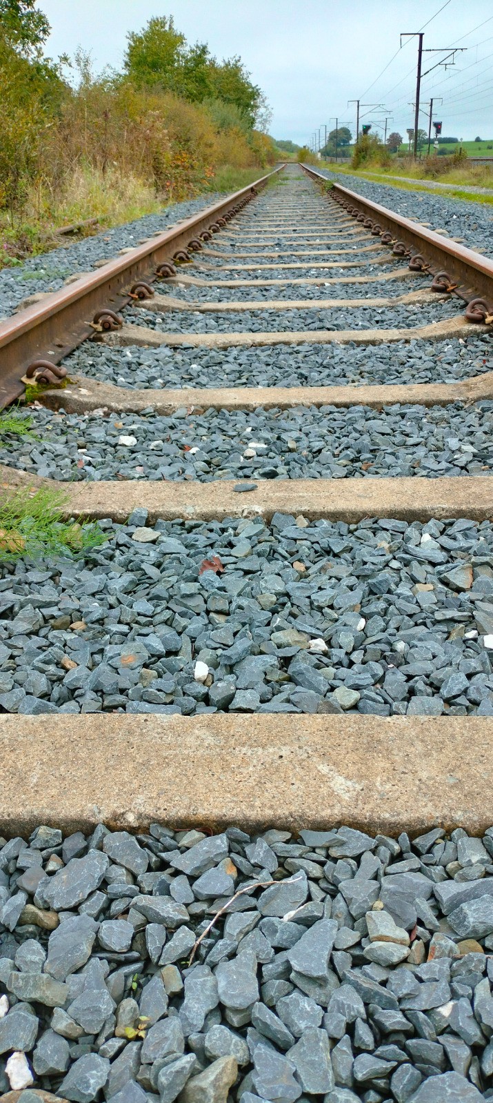 Aix-sur-Cloie en longeant l'arrière des bâtiments industriels. Le chemin de fer vous guide comme un fil d’Ariane à travers la campagne, jusqu’à