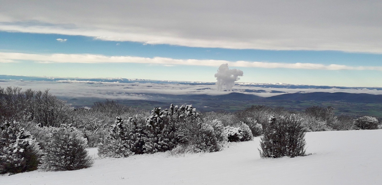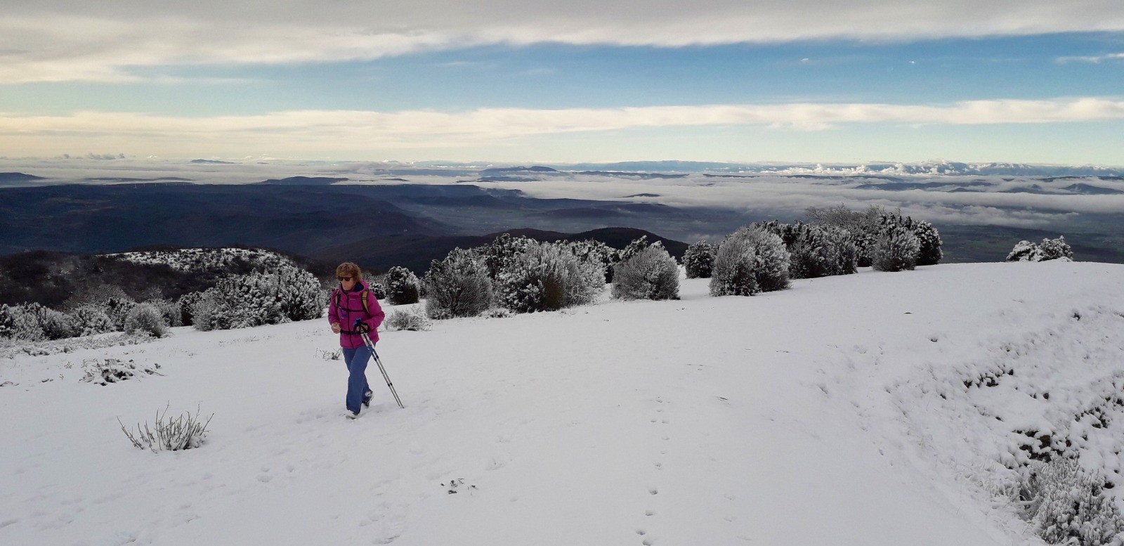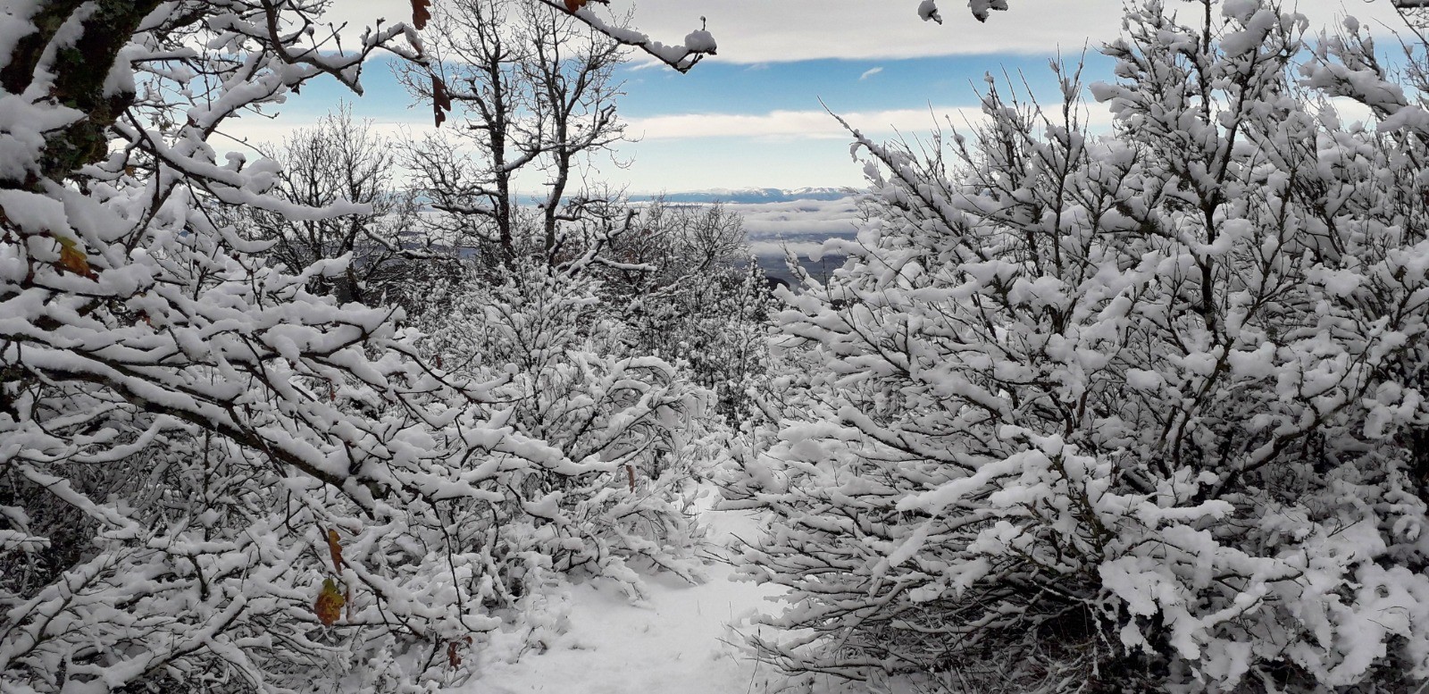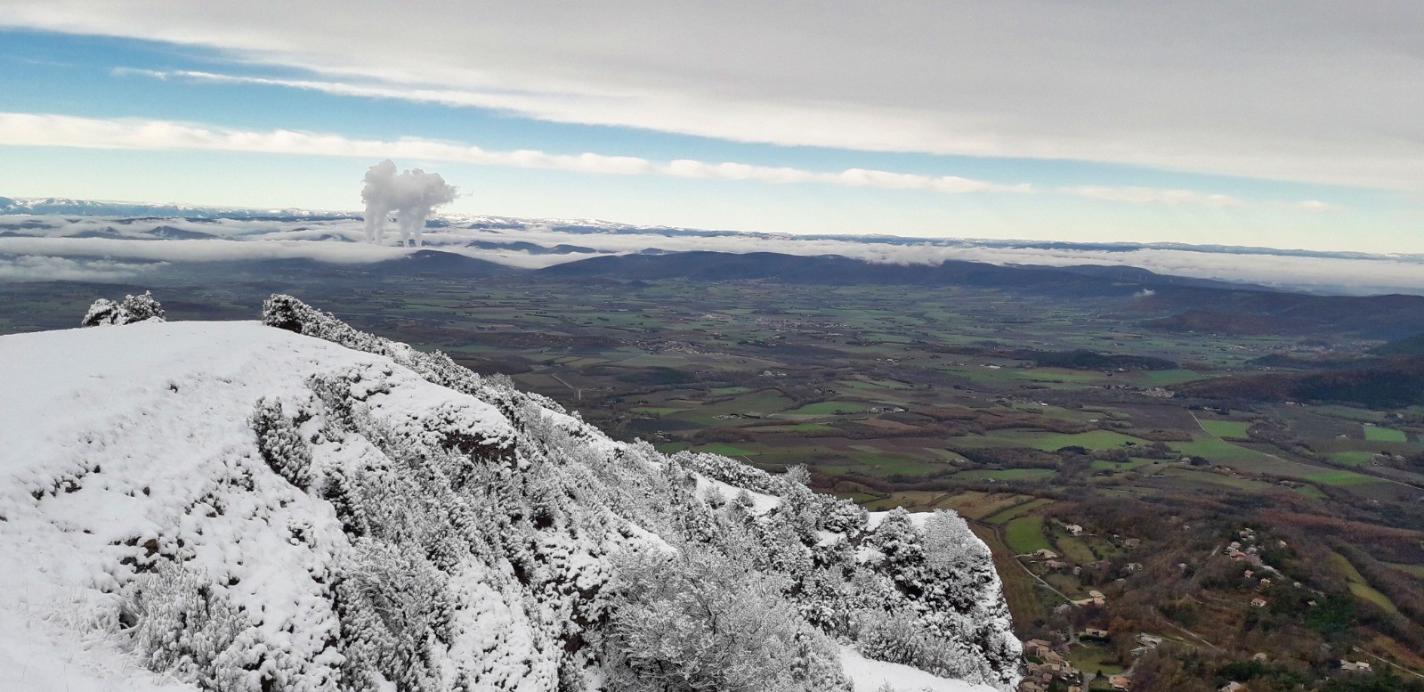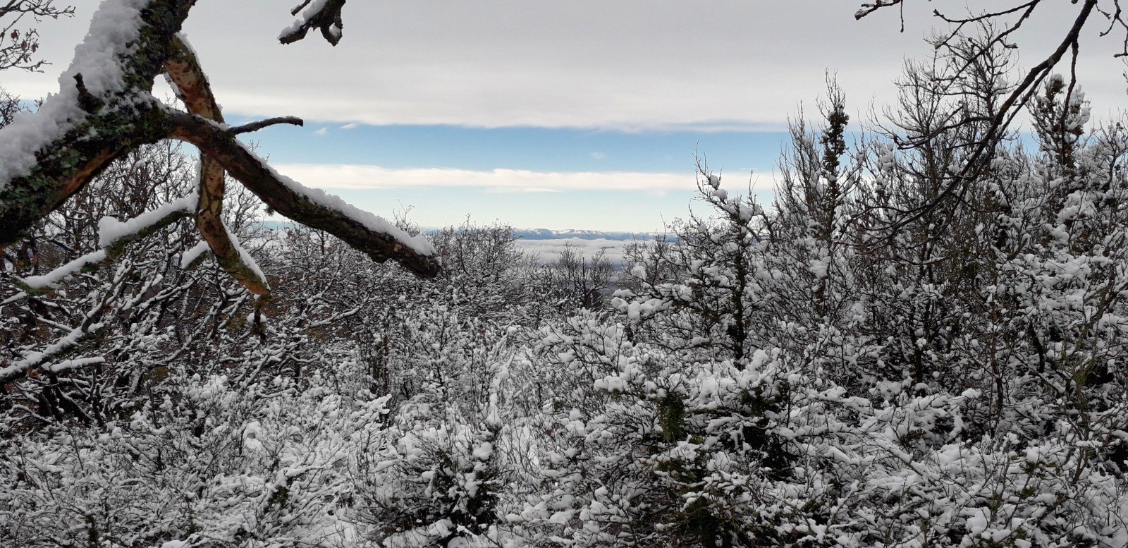 Après la pluie d'hier, sortie pédestre au départ de Le Poël Laval, histoire de valider quelques sentiers pour le VTT, la neige est au rendez-vous sur le plateau.