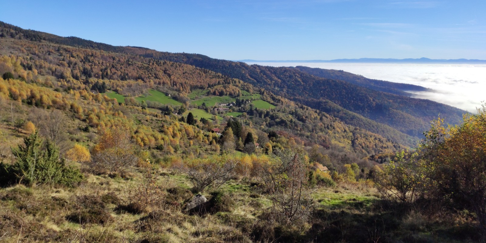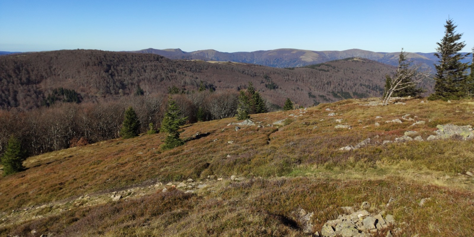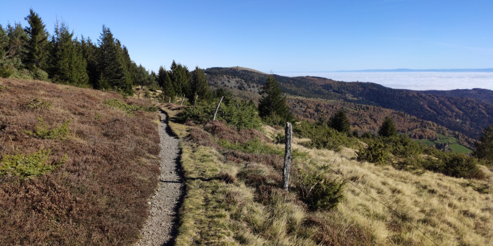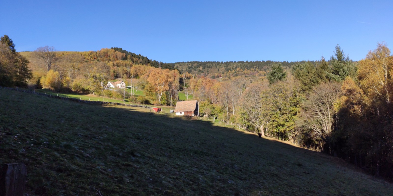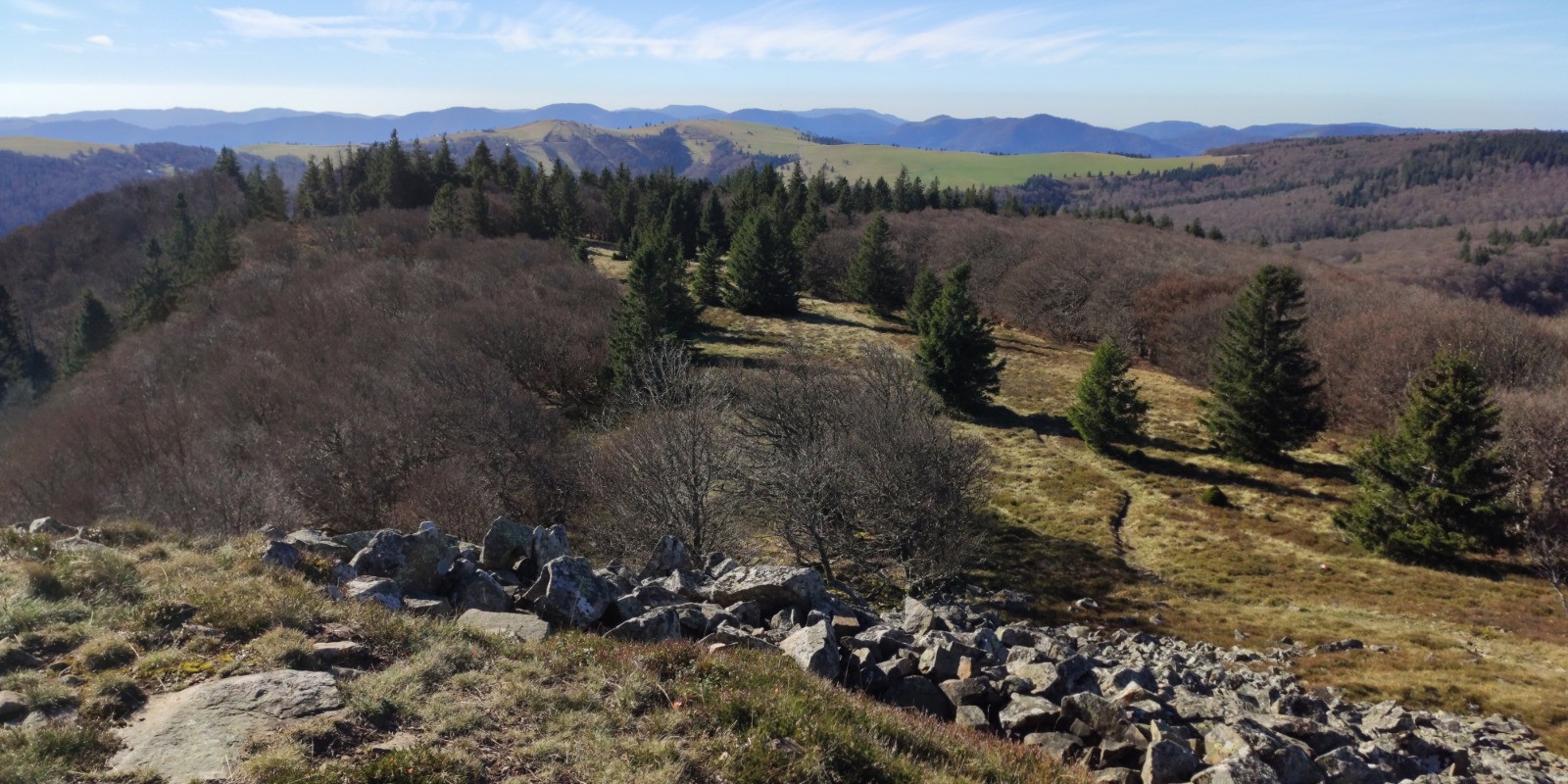 Linthal (parking de la Mairie) - Obersengern - Durbahl - Refuge du Hilsen - Col du Hilsenfirst - [GR532] - Col du Lauchen - Klinzkopf (1329 m) - Col d'Oberlauchen - Col du Lauchen - Chemin du Welschweg - Remspach - Chemin du Bienwald - Linthal (parking de la Mairie)