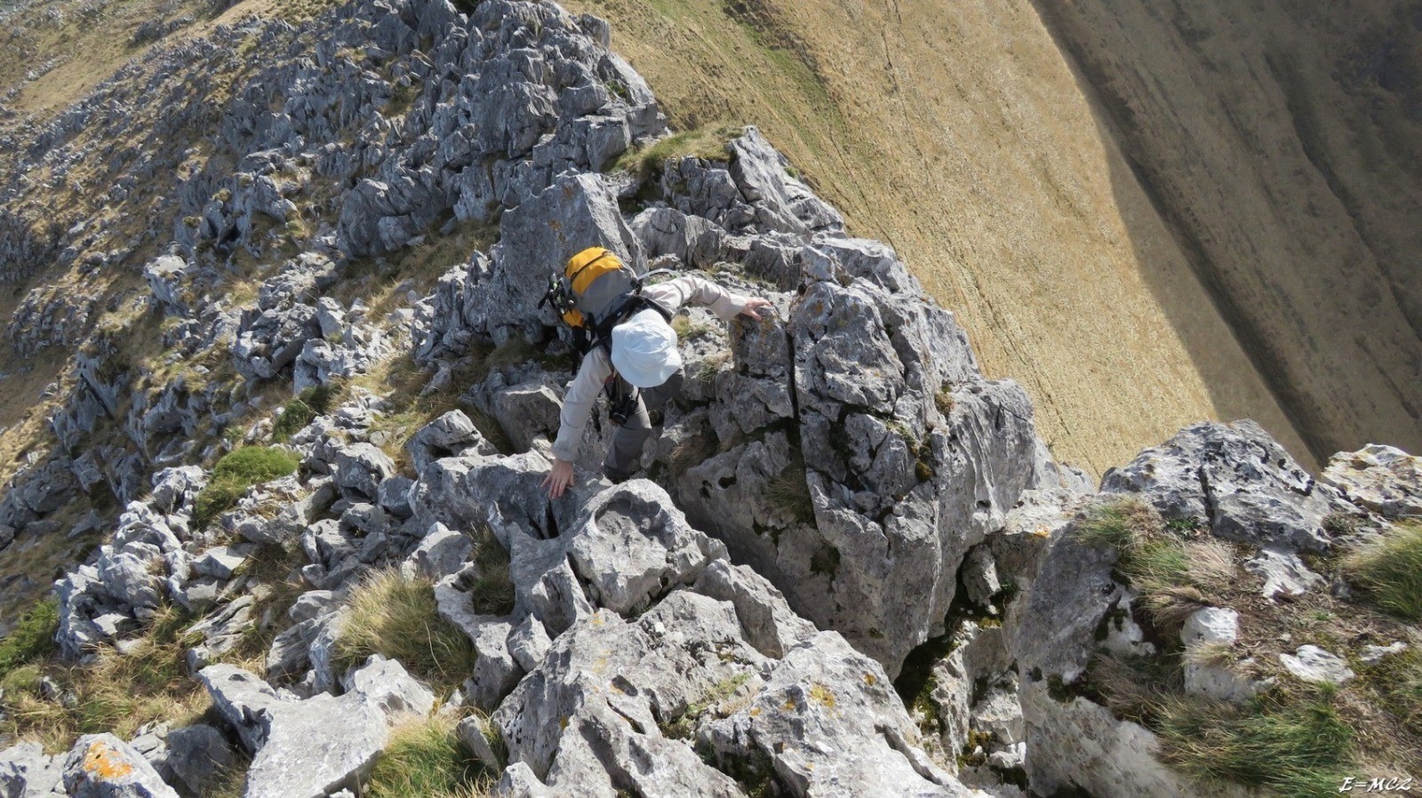 Du sommet descendre au sud-ouest au Col de Napatch puis par une traversée ascendante au nord-ouest rejoindre le col sans nom au pied du Sommet de Mustayou. Remonter l'arête nord-ouest. Quelques passages nécessitent l'aide des mains. Cette arête vue du Soum de Souturou paraissait bien raide, en réalité elle est bien plus facile. Descendre au col par la même arête et poursuivre sur la crête facile jusqu'au sommet de Biscacou.