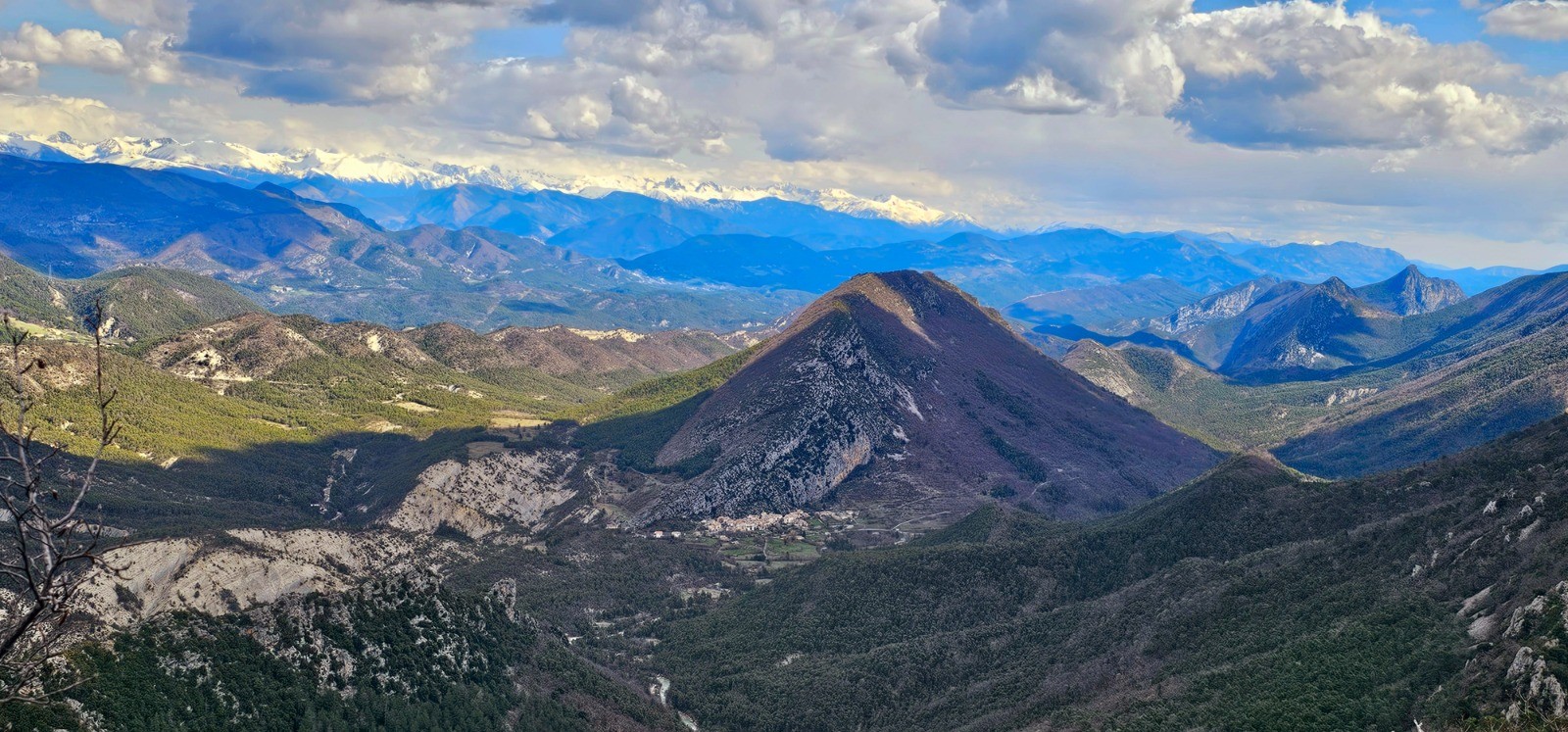 En vis à vis crête de l'Eouvière dissimulant village de Briançonnet