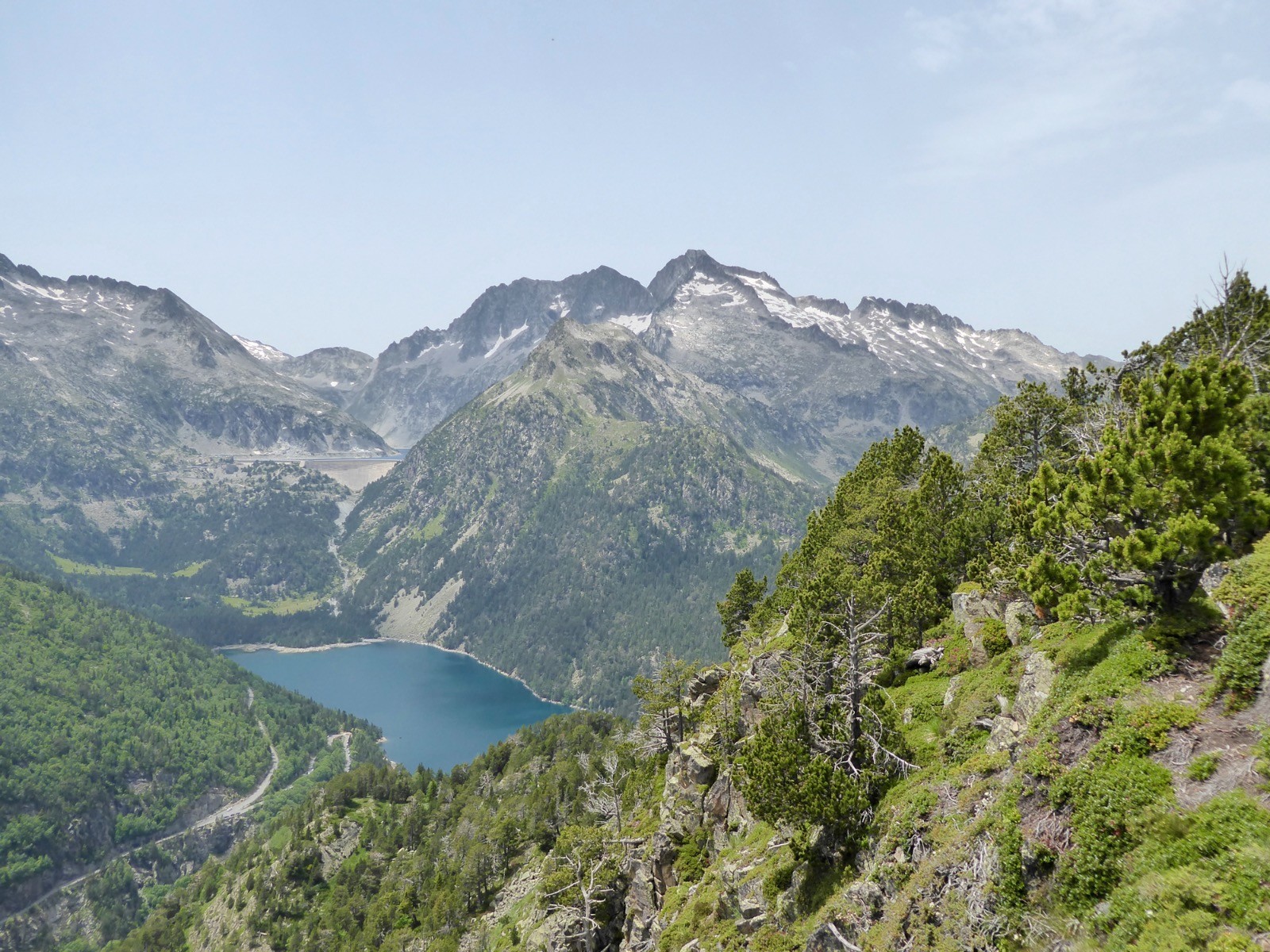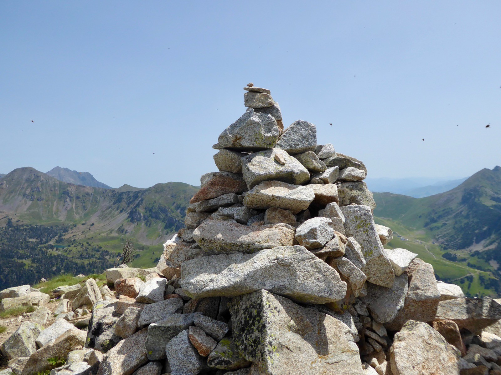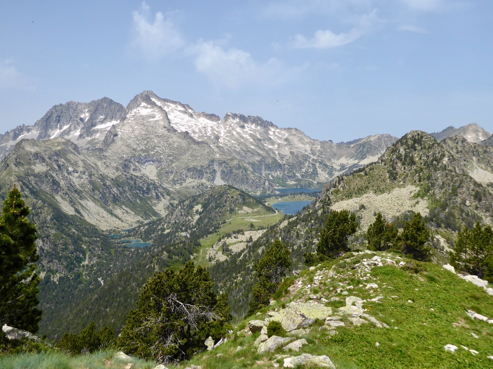 Excellente journée pour aller profiter du tour d'horizon à ce sommet certes modeste, mais qui a un panorama extra!! Néouvielle, Pic des Trois Conseillers, Turon de Néouvielle, Pic Long, Campbieil, Bugatet,Pic d'Estaragne,Pic de Bastan , Portarras, Pichaley, Pic du Midi de Bigorre etc etc ... Lac de L'Oule, Cap de Long , Orédon , Laquettes, Aubert, Aumar, Même le refuge du Bastan et le tout sous un soleil de plomb.