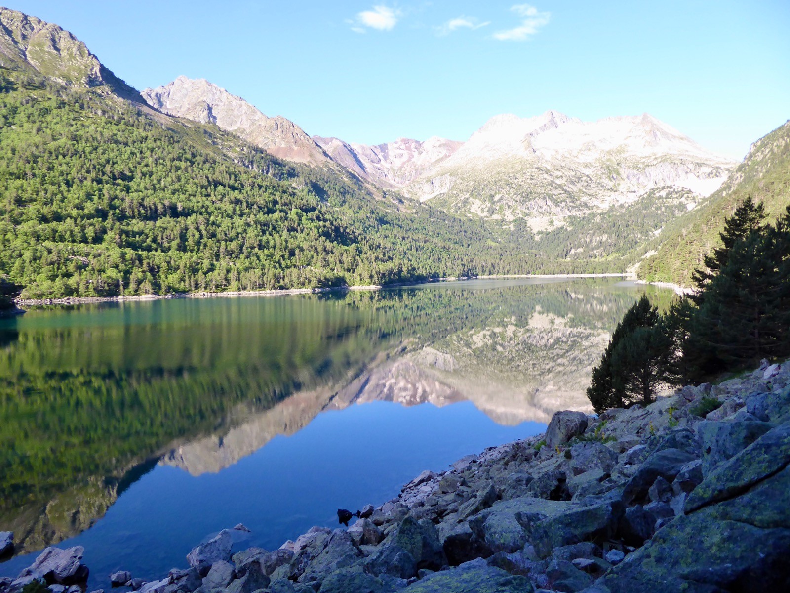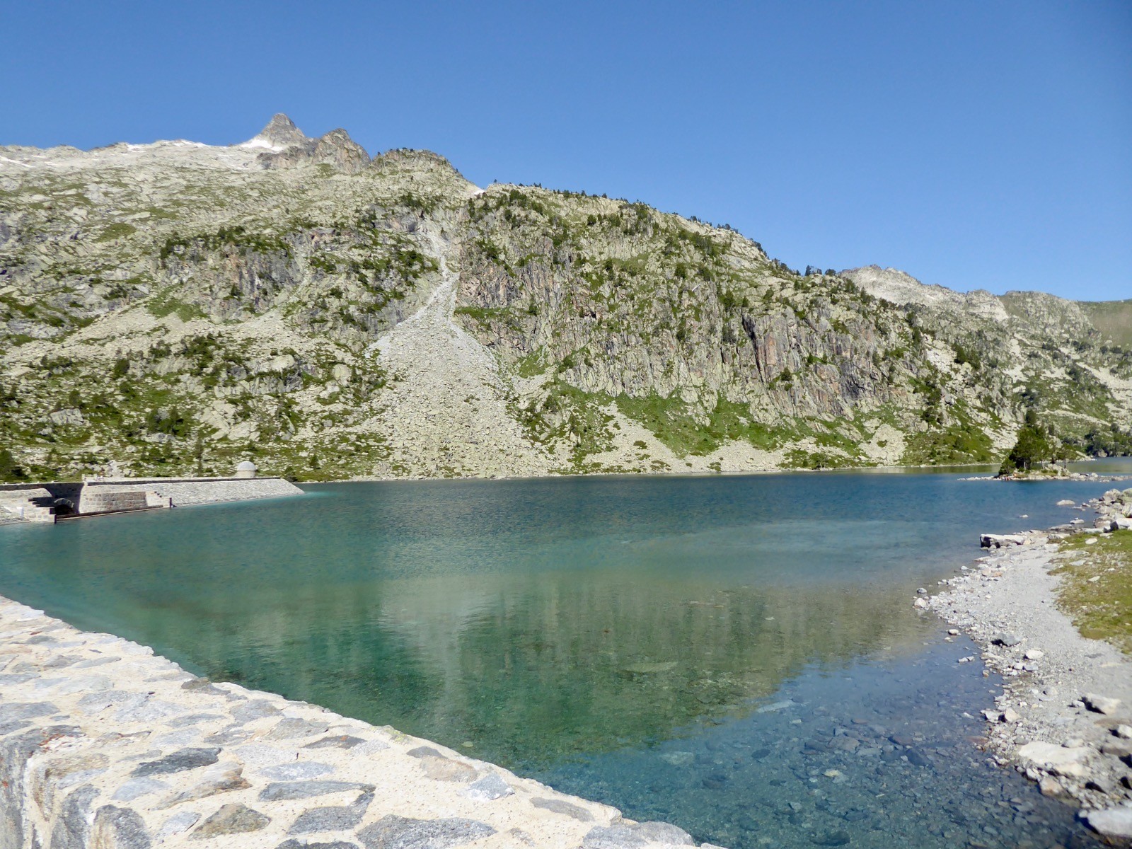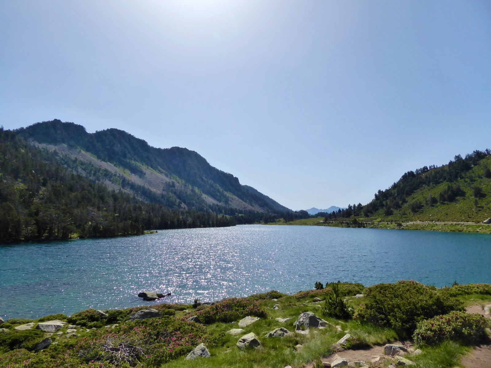Excellente journée pour aller profiter du tour d'horizon à ce sommet certes modeste, mais qui a un panorama extra!! Néouvielle, Pic des Trois Conseillers, Turon de Néouvielle, Pic Long, Campbieil, Bugatet,Pic d'Estaragne,Pic de Bastan , Portarras, Pichaley, Pic du Midi de Bigorre etc etc ... Lac de L'Oule, Cap de Long , Orédon , Laquettes, Aubert, Aumar, Même le refuge du Bastan et le tout sous un soleil de plomb.