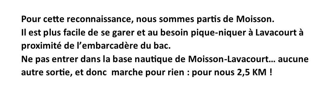 Reconnaissance, départ parkings du bac de Lavacourt.