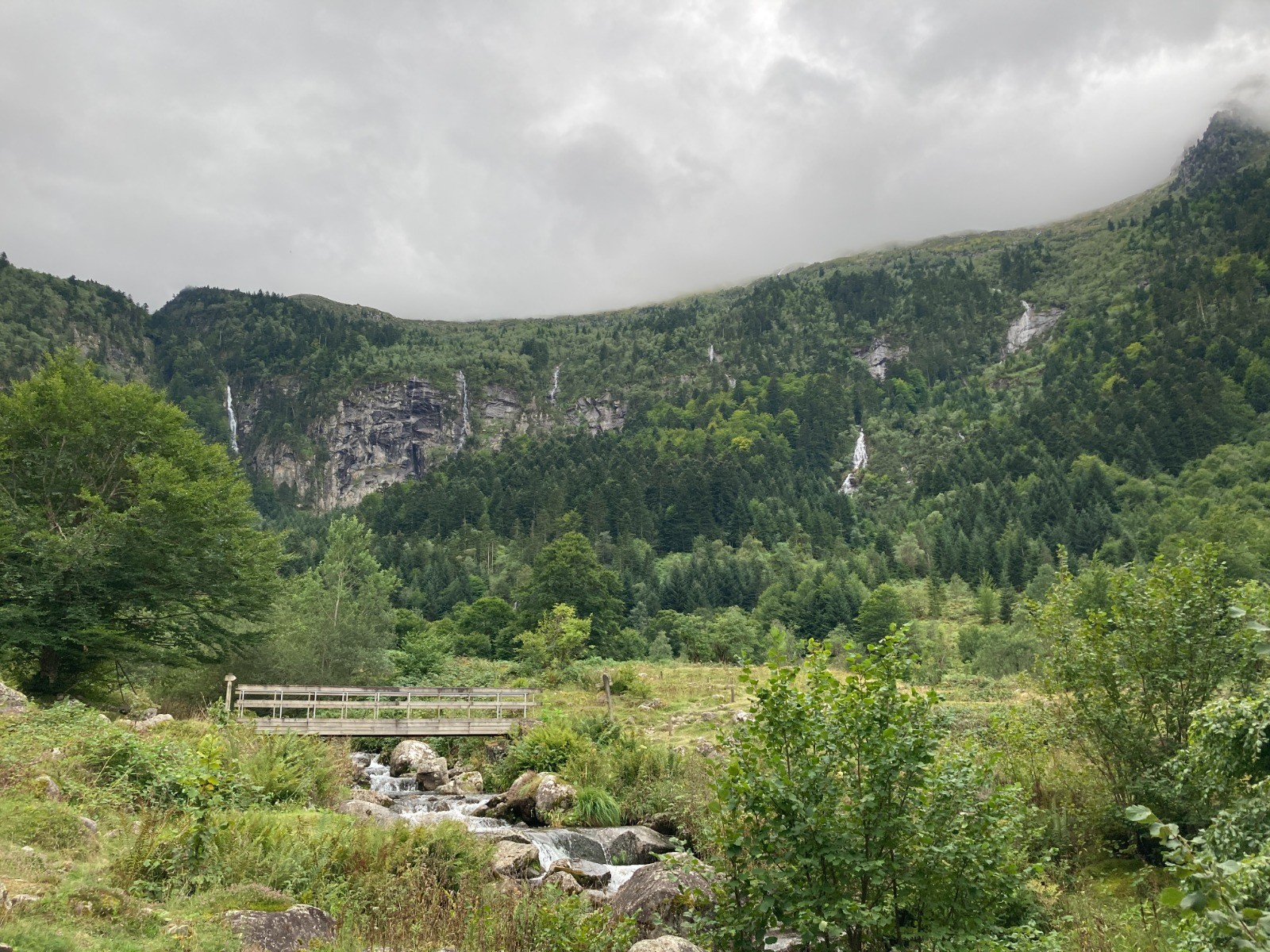 Parking sur la commune d'Ustou, après le hameau de Stillon il faut suivre "Cagateille" jusqu'à un parking équipé d'un rond point, de toilettes et de tables à pique-nique.