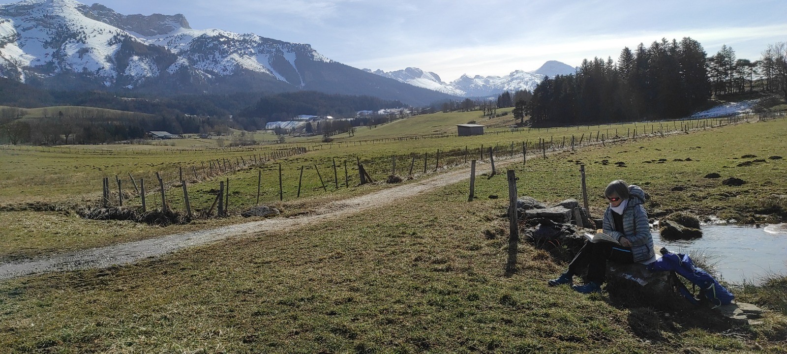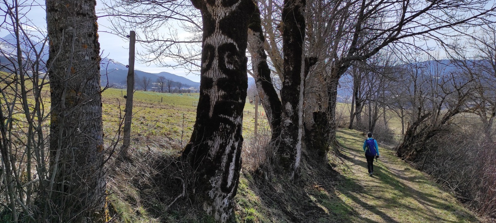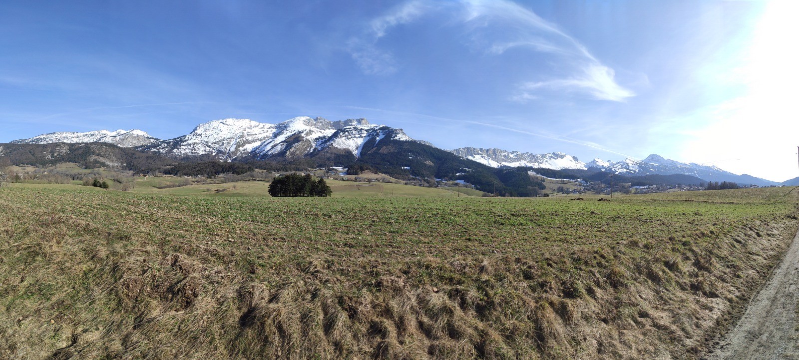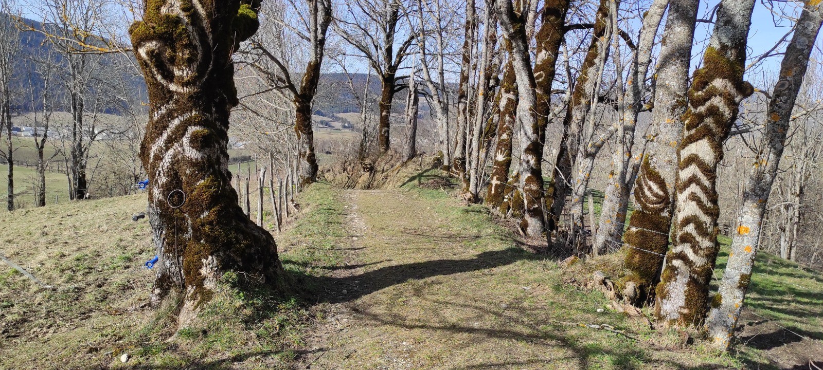 Petite ballade dans la plaine de lans pour le dernier jour de notre semaine à Villard. Temps magnifique, belle maisons du plateau, et vue sur le sentier Gobert ou nous avons failli passer sous une coulée deux jour avant. Du land art avec la mousse des arbres le long du chemin.