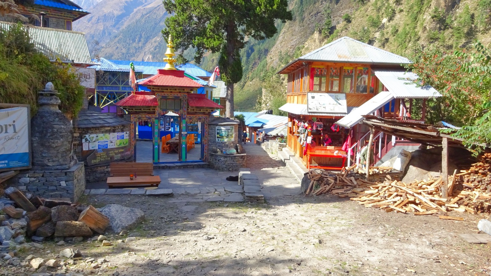 Pause déjeuner à Jungle Hotel KLSP, Nuit à Namrung : Tibetan Guest House, wifi 200 rps, douche chaude 300 rps, chambre très rustique sans prise.