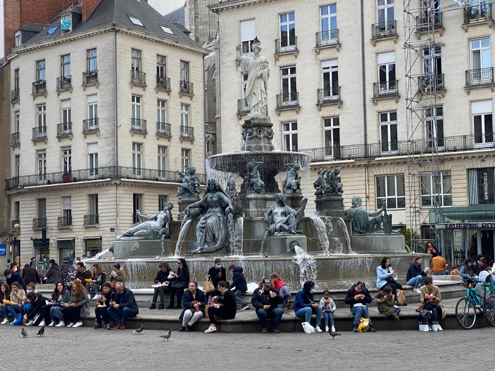 Nous voilà au coeur de Nantes : "Place Royale", dotée d'une fontaine monumentale. Elle est le lieu de rassemblement de toutes les grandes manifestations festives ou non.